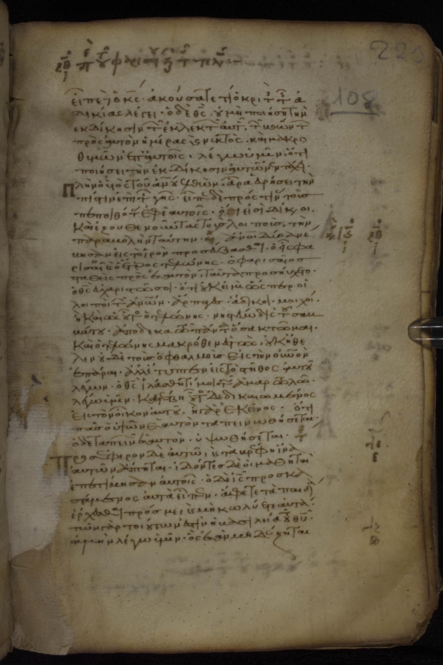 Eleventh century minuscule of the Gospels, the Apostolos, and Paul on parchment; 318 leaves, 1 column, 34 lines per column. Images were taken at the National Library of Greece in Athens.