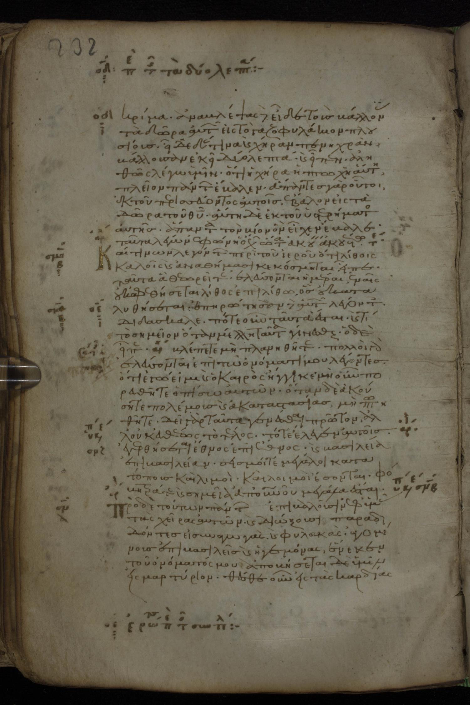 Eleventh century minuscule of the Gospels, the Apostolos, and Paul on parchment; 318 leaves, 1 column, 34 lines per column. Images were taken at the National Library of Greece in Athens.