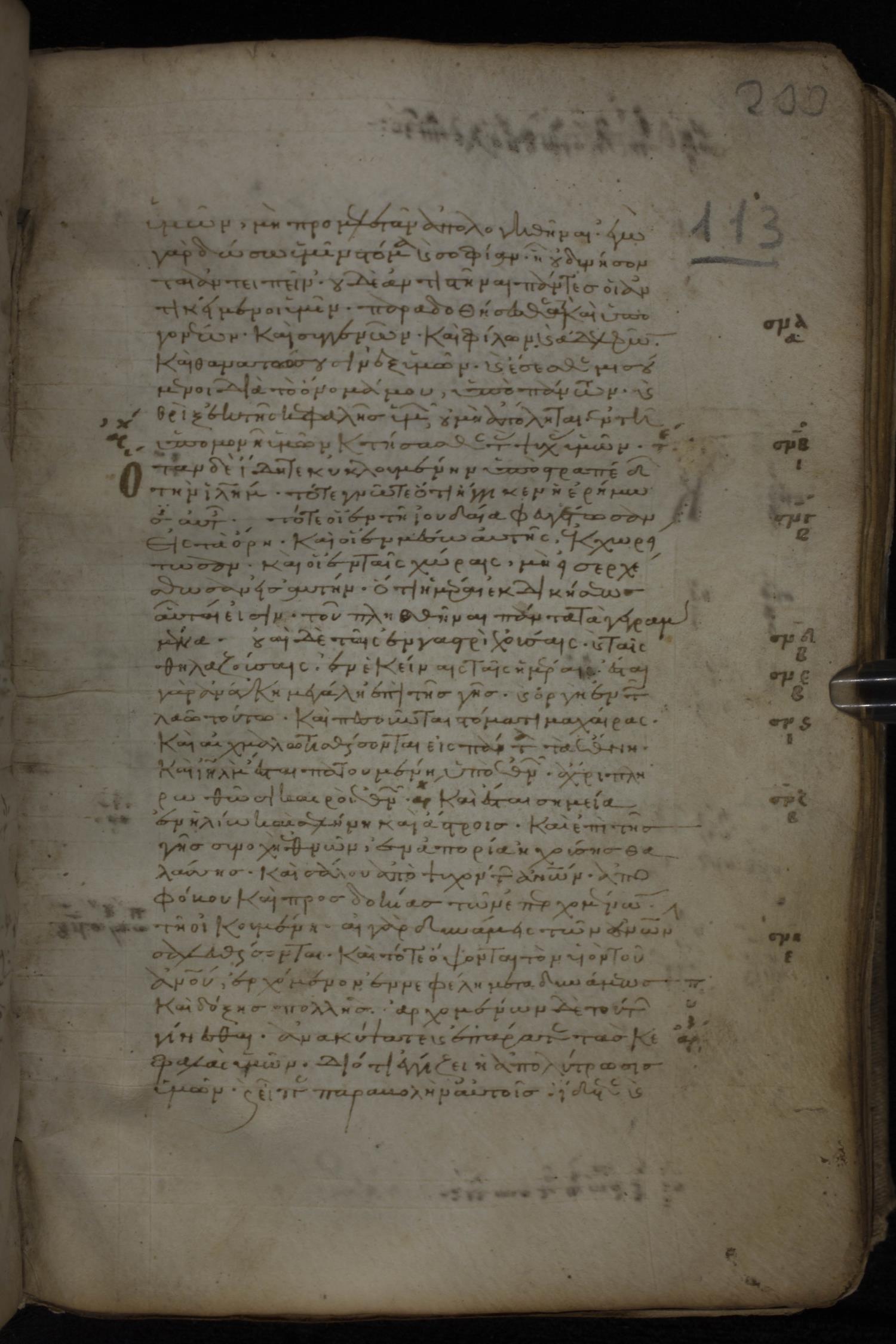 Eleventh century minuscule of the Gospels, the Apostolos, and Paul on parchment; 318 leaves, 1 column, 34 lines per column. Images were taken at the National Library of Greece in Athens.