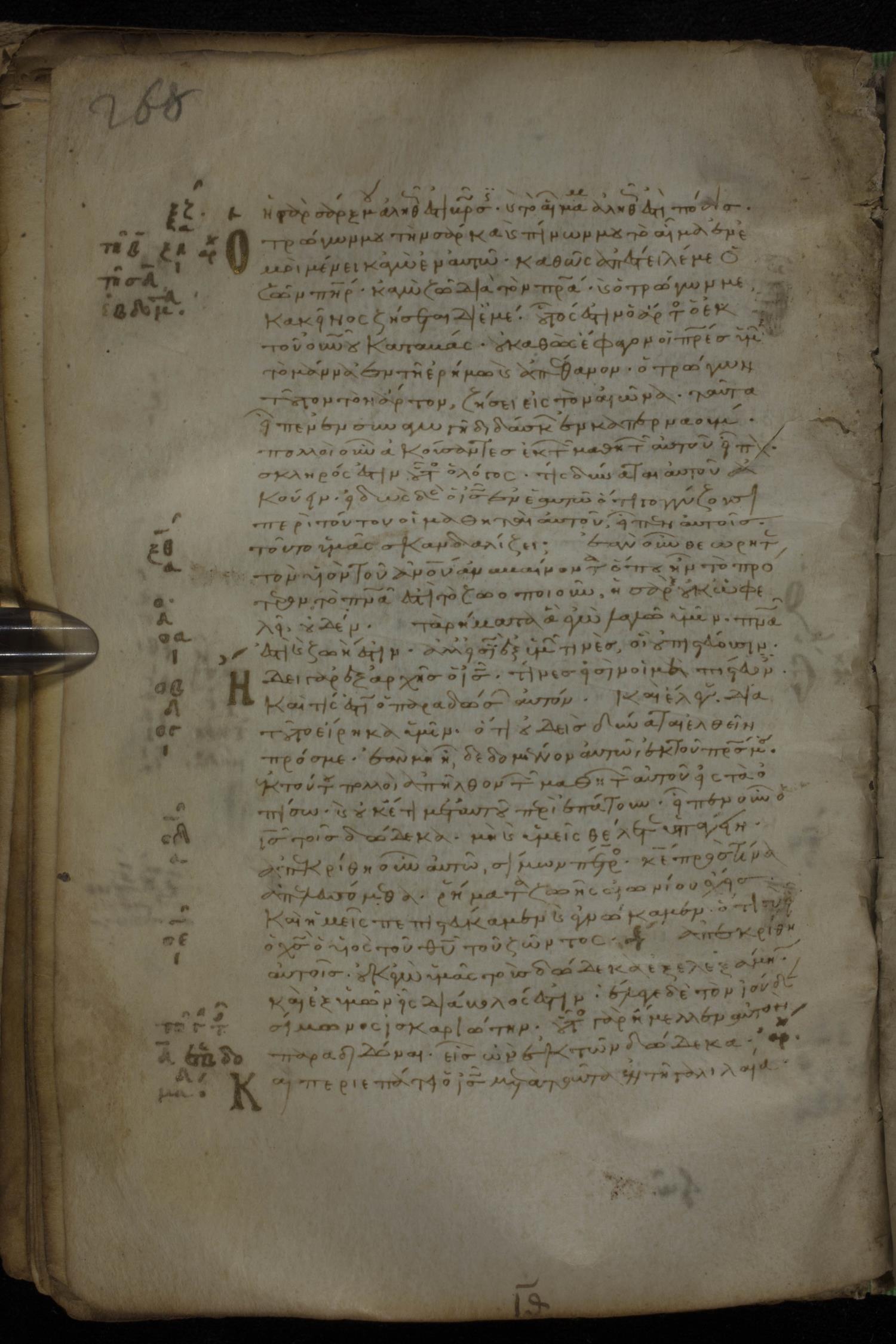 Eleventh century minuscule of the Gospels, the Apostolos, and Paul on parchment; 318 leaves, 1 column, 34 lines per column. Images were taken at the National Library of Greece in Athens.