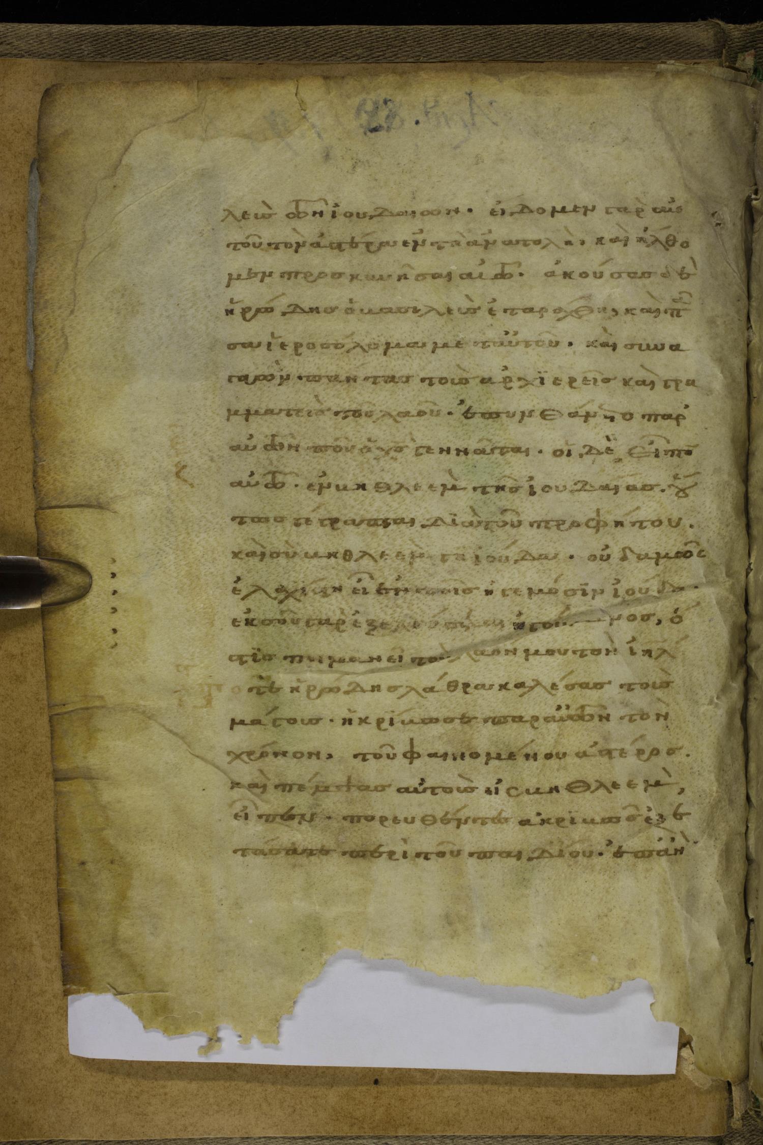 Eleventh century minuscule of the Gospels on parchment; 264 total leaves, 1 column, 20 lines per column. The manuscript is in two locations; both the portion at Muenster (148 leaves) and the portion at the National Library of Greece in Athens (116 leaves) have been digitized by CSNTM.