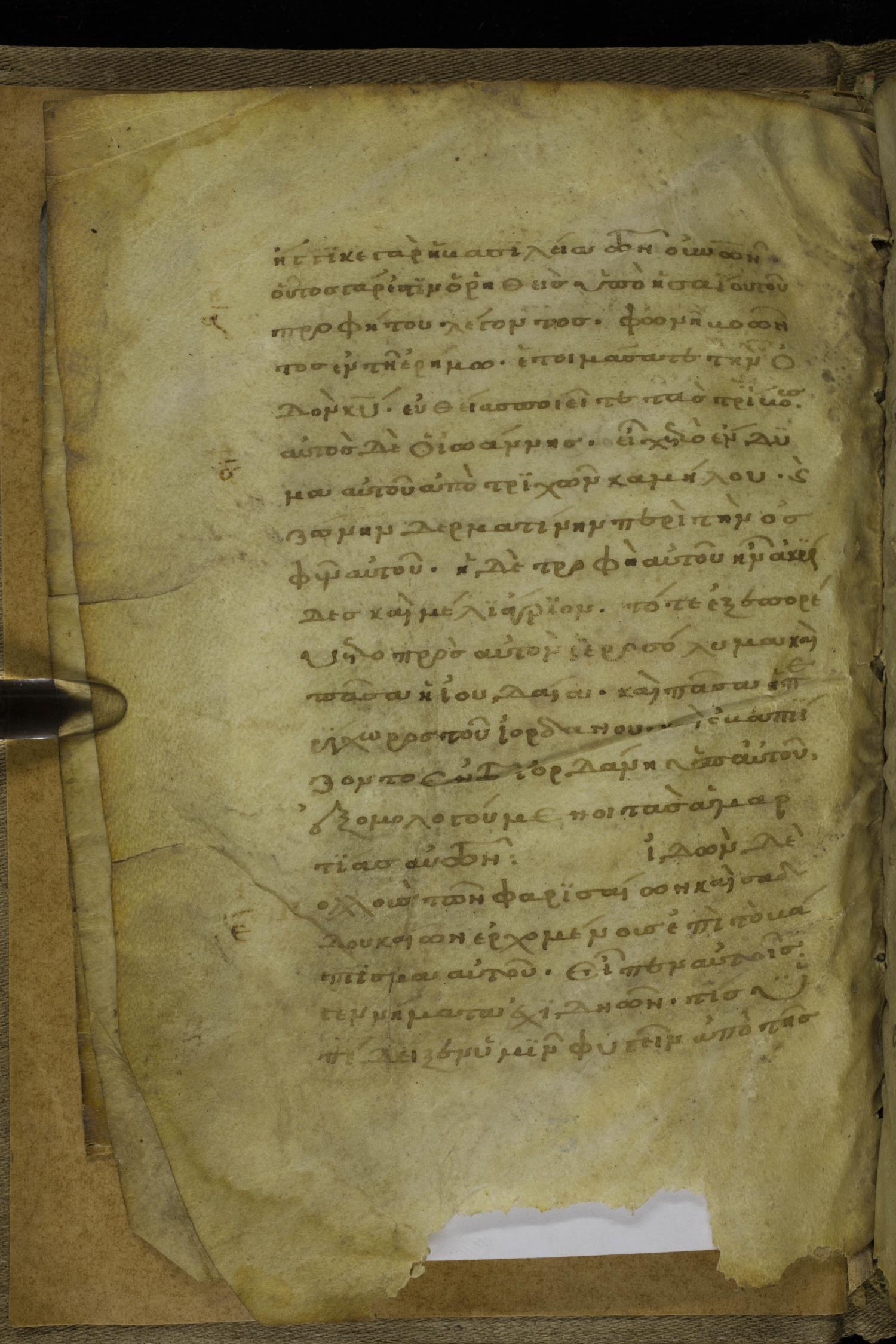 Eleventh century minuscule of the Gospels on parchment; 264 total leaves, 1 column, 20 lines per column. The manuscript is in two locations; both the portion at Muenster (148 leaves) and the portion at the National Library of Greece in Athens (116 leaves) have been digitized by CSNTM.