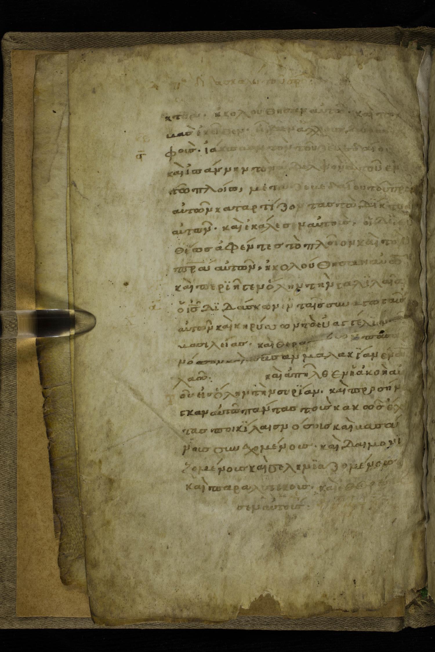 Eleventh century minuscule of the Gospels on parchment; 264 total leaves, 1 column, 20 lines per column. The manuscript is in two locations; both the portion at Muenster (148 leaves) and the portion at the National Library of Greece in Athens (116 leaves) have been digitized by CSNTM.