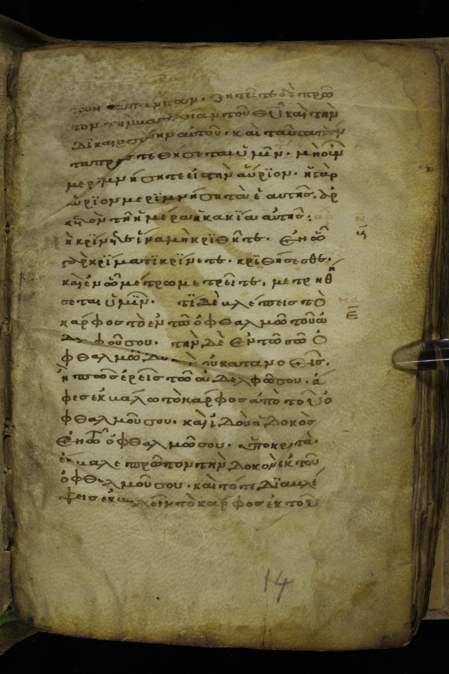 Eleventh century minuscule of the Gospels on parchment; 264 total leaves, 1 column, 20 lines per column. The manuscript is in two locations; both the portion at Muenster (148 leaves) and the portion at the National Library of Greece in Athens (116 leaves) have been digitized by CSNTM.