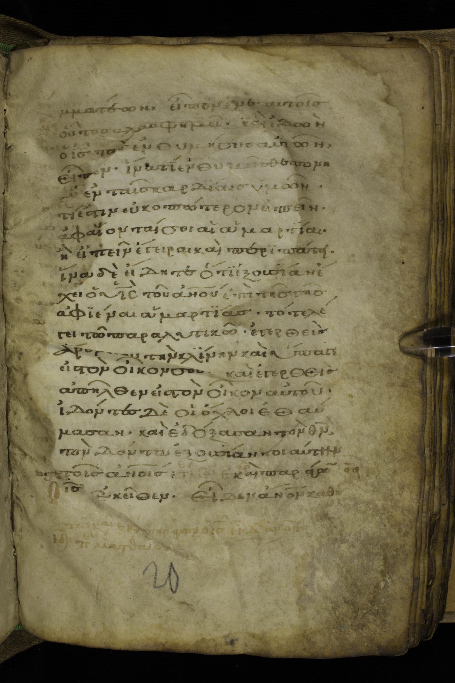 Eleventh century minuscule of the Gospels on parchment; 264 total leaves, 1 column, 20 lines per column. The manuscript is in two locations; both the portion at Muenster (148 leaves) and the portion at the National Library of Greece in Athens (116 leaves) have been digitized by CSNTM.