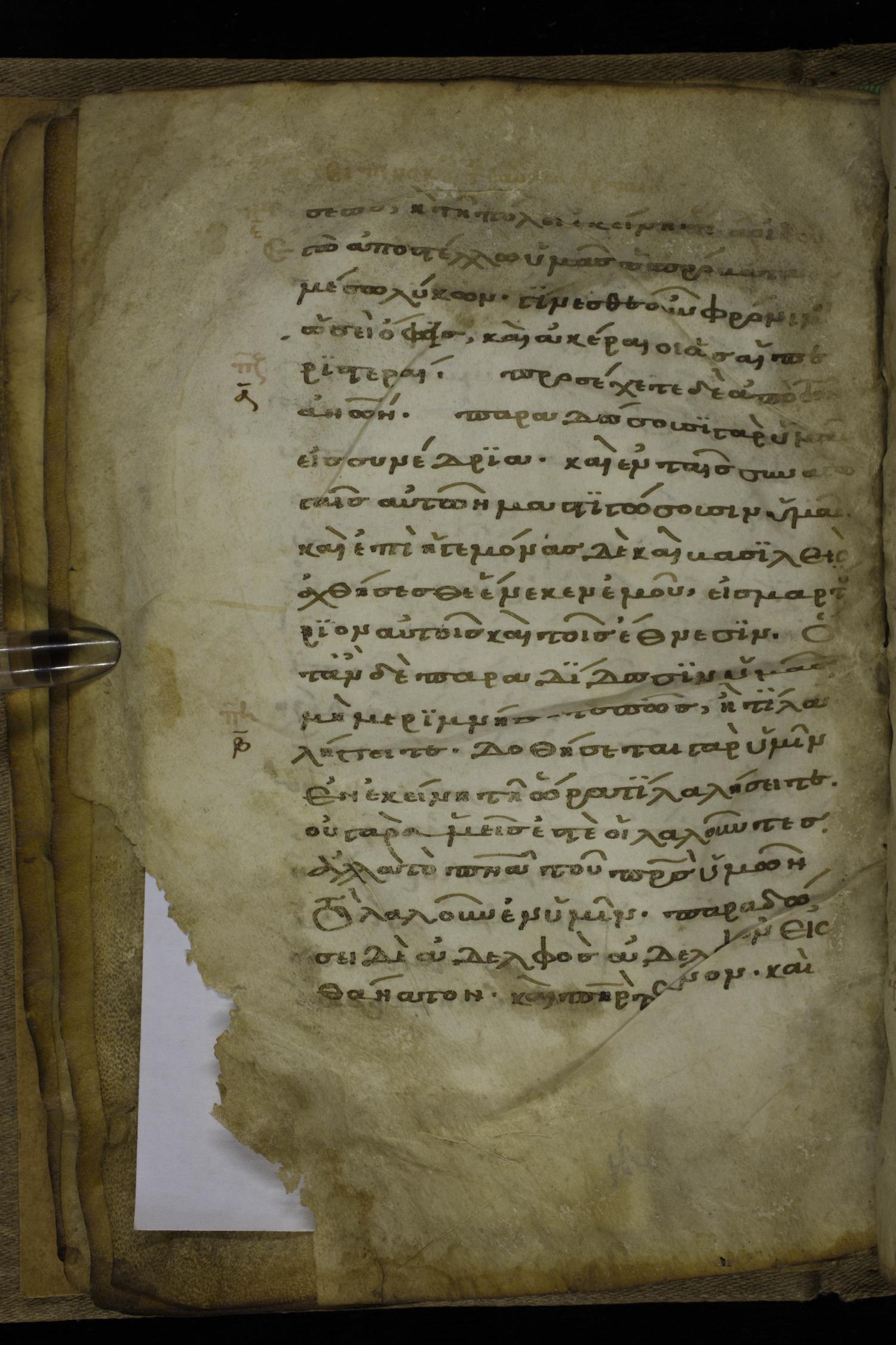 Eleventh century minuscule of the Gospels on parchment; 264 total leaves, 1 column, 20 lines per column. The manuscript is in two locations; both the portion at Muenster (148 leaves) and the portion at the National Library of Greece in Athens (116 leaves) have been digitized by CSNTM.