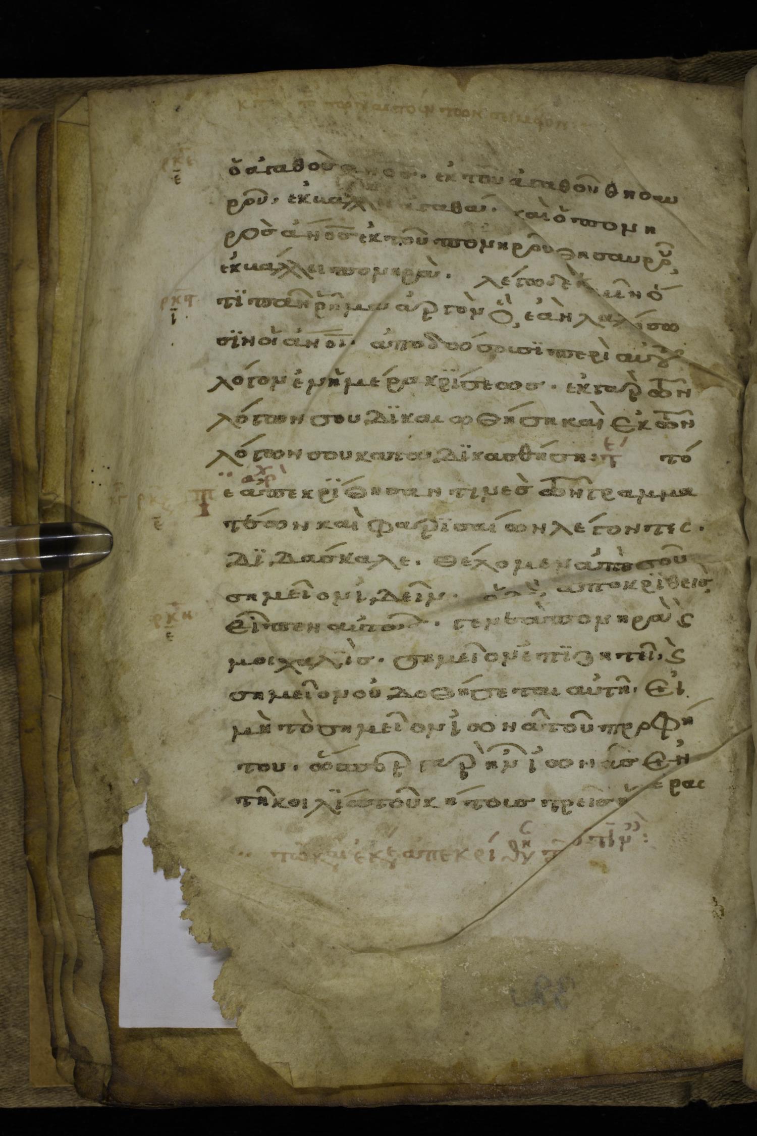 Eleventh century minuscule of the Gospels on parchment; 264 total leaves, 1 column, 20 lines per column. The manuscript is in two locations; both the portion at Muenster (148 leaves) and the portion at the National Library of Greece in Athens (116 leaves) have been digitized by CSNTM.