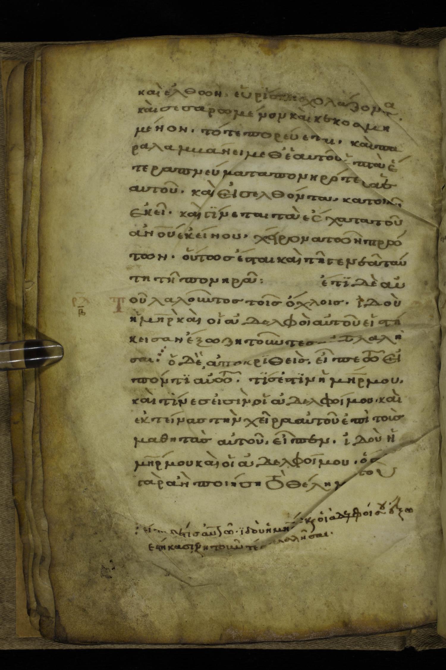 καὶ ἐκτείνας τὴν χεῖρα αὐτοῦ ἐπὶ τοὺς μαθητὰς αὐτοῦ εἶπεν Ἰδοὺ ἡ μήτηρ μου καὶ οἱ ἀδελφοί μου·