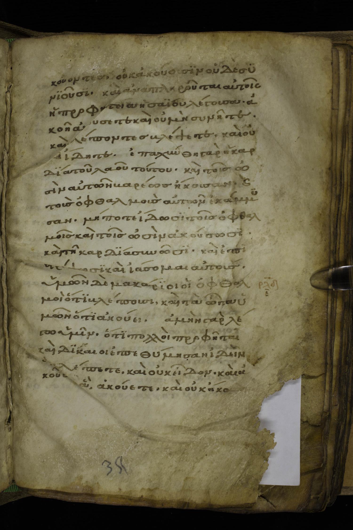 Eleventh century minuscule of the Gospels on parchment; 264 total leaves, 1 column, 20 lines per column. The manuscript is in two locations; both the portion at Muenster (148 leaves) and the portion at the National Library of Greece in Athens (116 leaves) have been digitized by CSNTM.