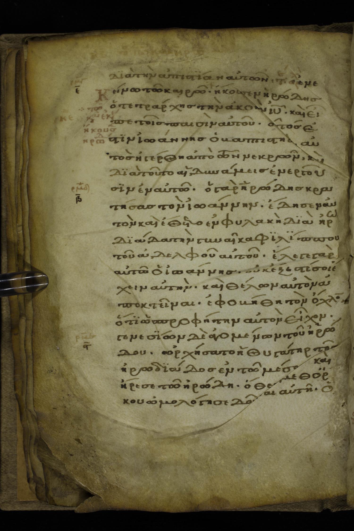 Eleventh century minuscule of the Gospels on parchment; 264 total leaves, 1 column, 20 lines per column. The manuscript is in two locations; both the portion at Muenster (148 leaves) and the portion at the National Library of Greece in Athens (116 leaves) have been digitized by CSNTM.