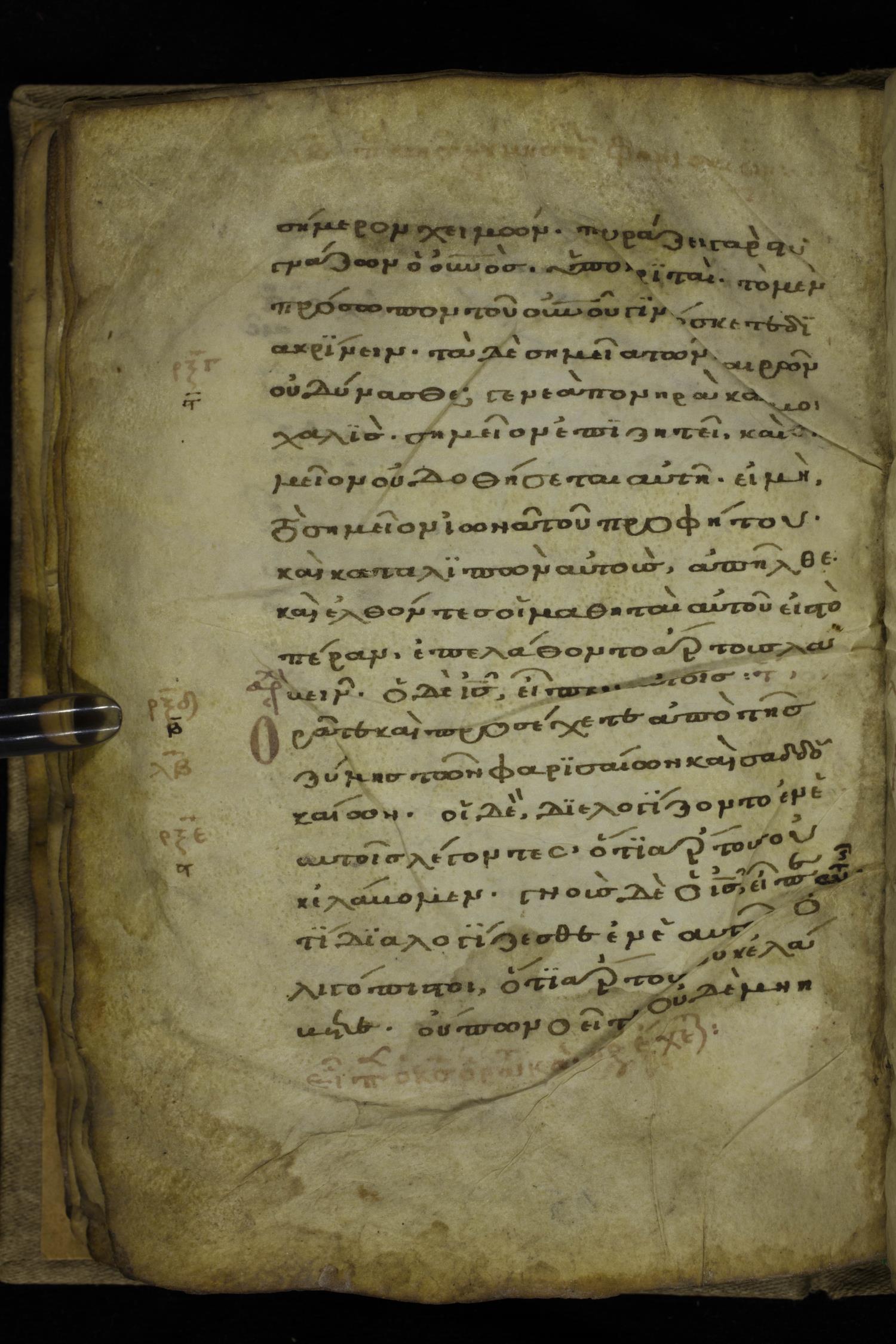 Eleventh century minuscule of the Gospels on parchment; 264 total leaves, 1 column, 20 lines per column. The manuscript is in two locations; both the portion at Muenster (148 leaves) and the portion at the National Library of Greece in Athens (116 leaves) have been digitized by CSNTM.