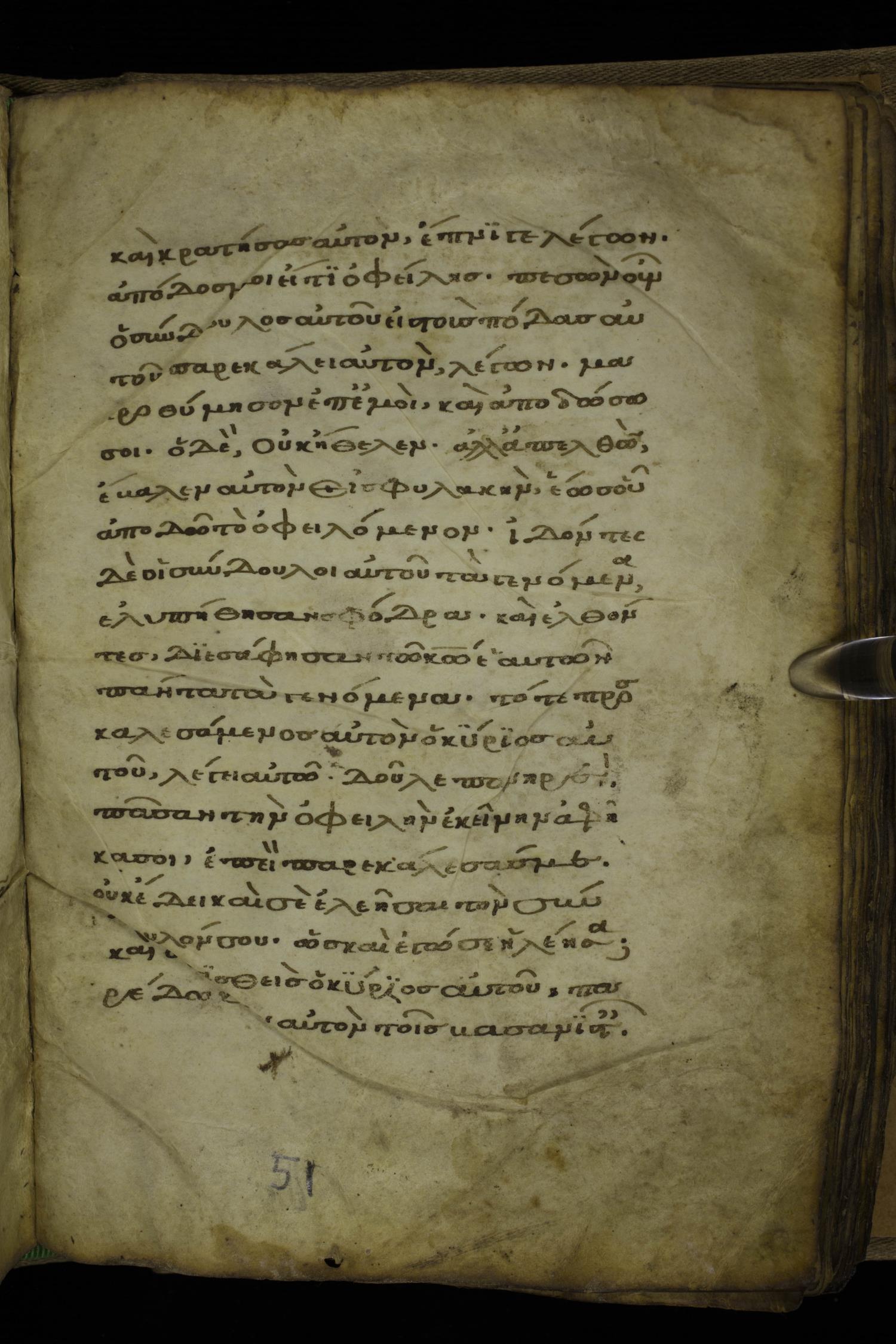 Eleventh century minuscule of the Gospels on parchment; 264 total leaves, 1 column, 20 lines per column. The manuscript is in two locations; both the portion at Muenster (148 leaves) and the portion at the National Library of Greece in Athens (116 leaves) have been digitized by CSNTM.
