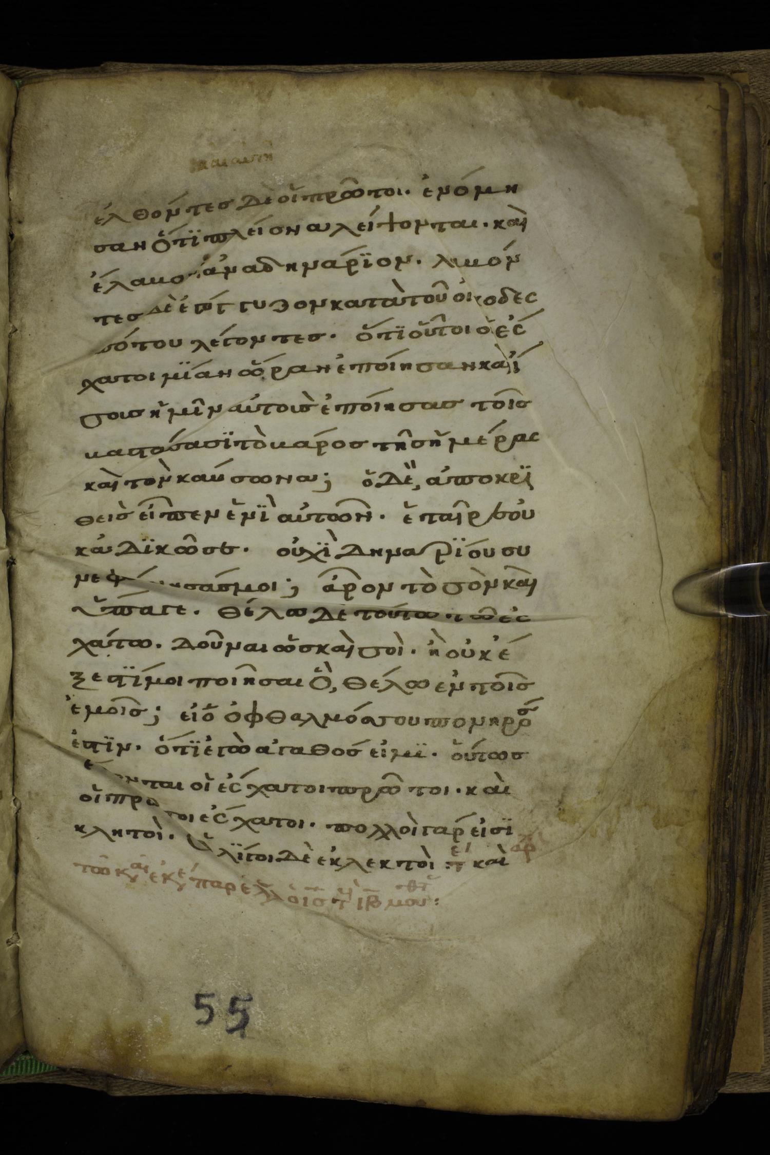 Eleventh century minuscule of the Gospels on parchment; 264 total leaves, 1 column, 20 lines per column. The manuscript is in two locations; both the portion at Muenster (148 leaves) and the portion at the National Library of Greece in Athens (116 leaves) have been digitized by CSNTM.