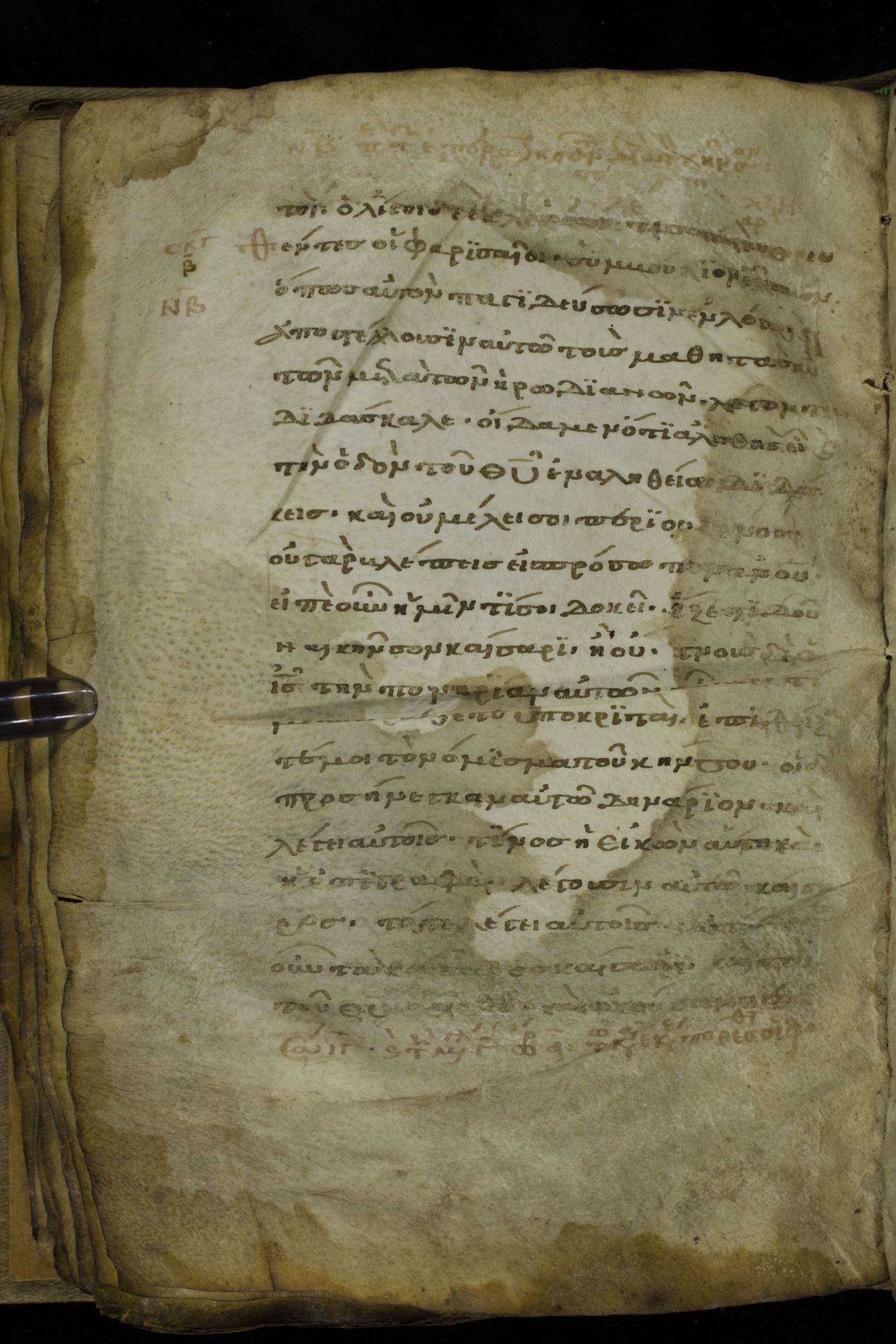 Eleventh century minuscule of the Gospels on parchment; 264 total leaves, 1 column, 20 lines per column. The manuscript is in two locations; both the portion at Muenster (148 leaves) and the portion at the National Library of Greece in Athens (116 leaves) have been digitized by CSNTM.