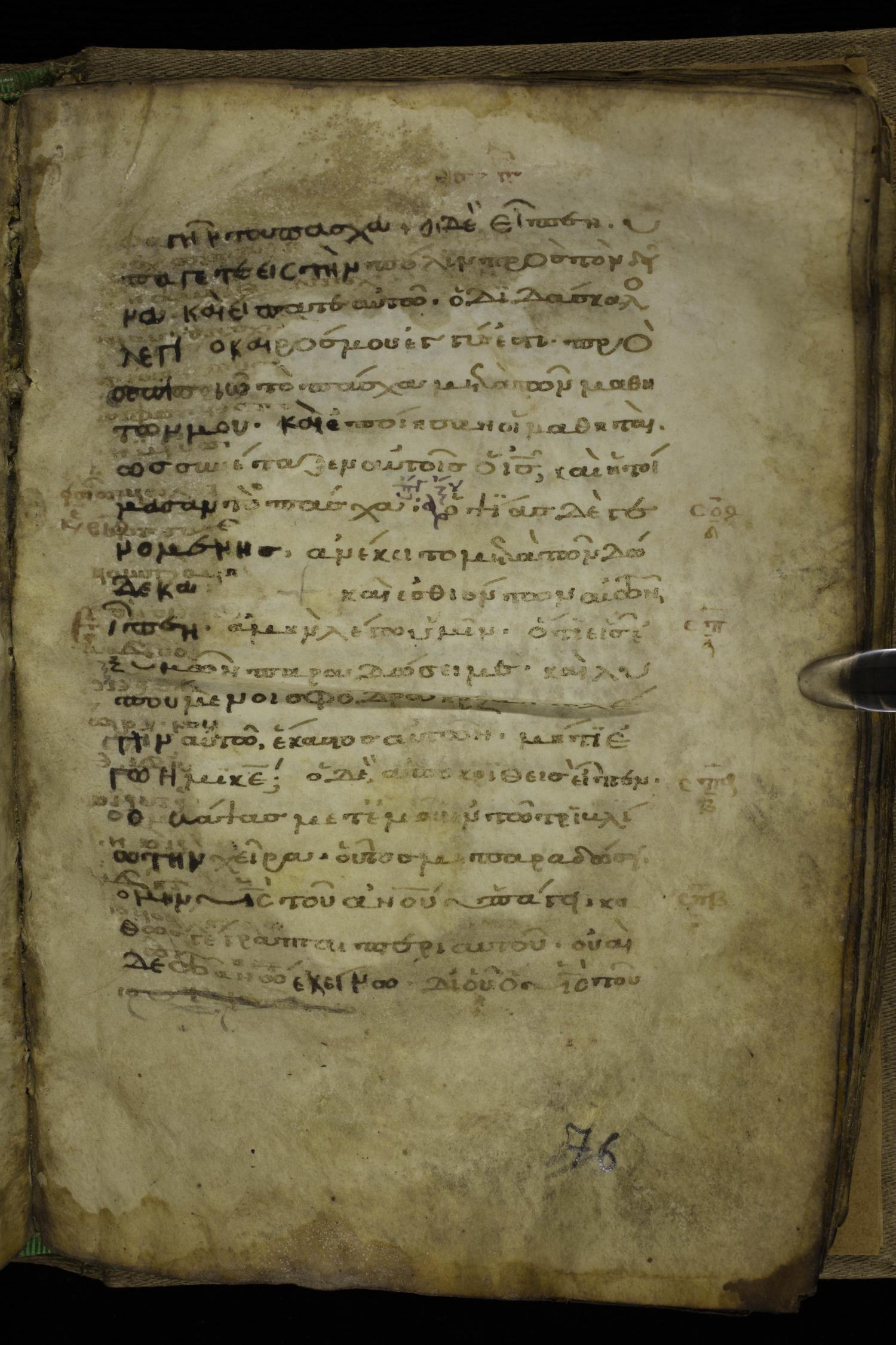 Eleventh century minuscule of the Gospels on parchment; 264 total leaves, 1 column, 20 lines per column. The manuscript is in two locations; both the portion at Muenster (148 leaves) and the portion at the National Library of Greece in Athens (116 leaves) have been digitized by CSNTM.