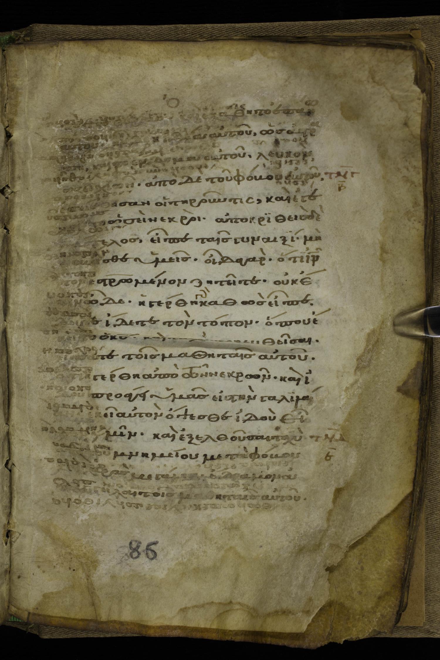 Eleventh century minuscule of the Gospels on parchment; 264 total leaves, 1 column, 20 lines per column. The manuscript is in two locations; both the portion at Muenster (148 leaves) and the portion at the National Library of Greece in Athens (116 leaves) have been digitized by CSNTM.
