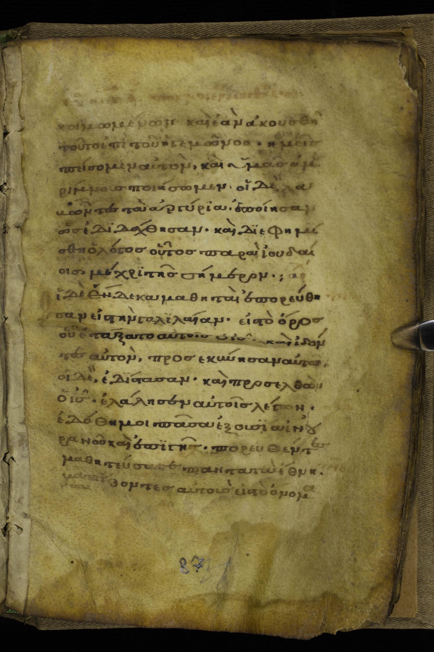 Eleventh century minuscule of the Gospels on parchment; 264 total leaves, 1 column, 20 lines per column. The manuscript is in two locations; both the portion at Muenster (148 leaves) and the portion at the National Library of Greece in Athens (116 leaves) have been digitized by CSNTM.
