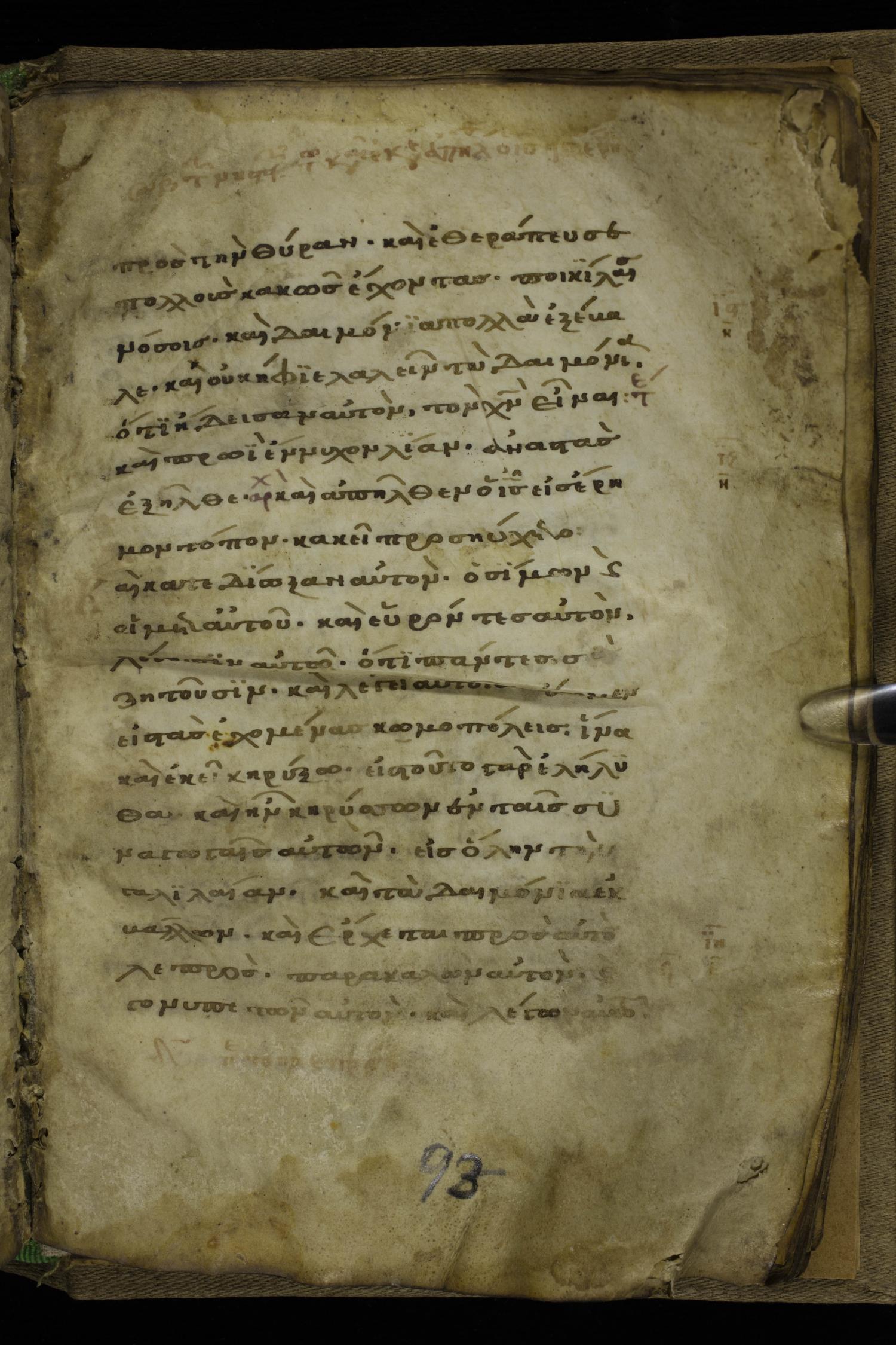 Eleventh century minuscule of the Gospels on parchment; 264 total leaves, 1 column, 20 lines per column. The manuscript is in two locations; both the portion at Muenster (148 leaves) and the portion at the National Library of Greece in Athens (116 leaves) have been digitized by CSNTM.