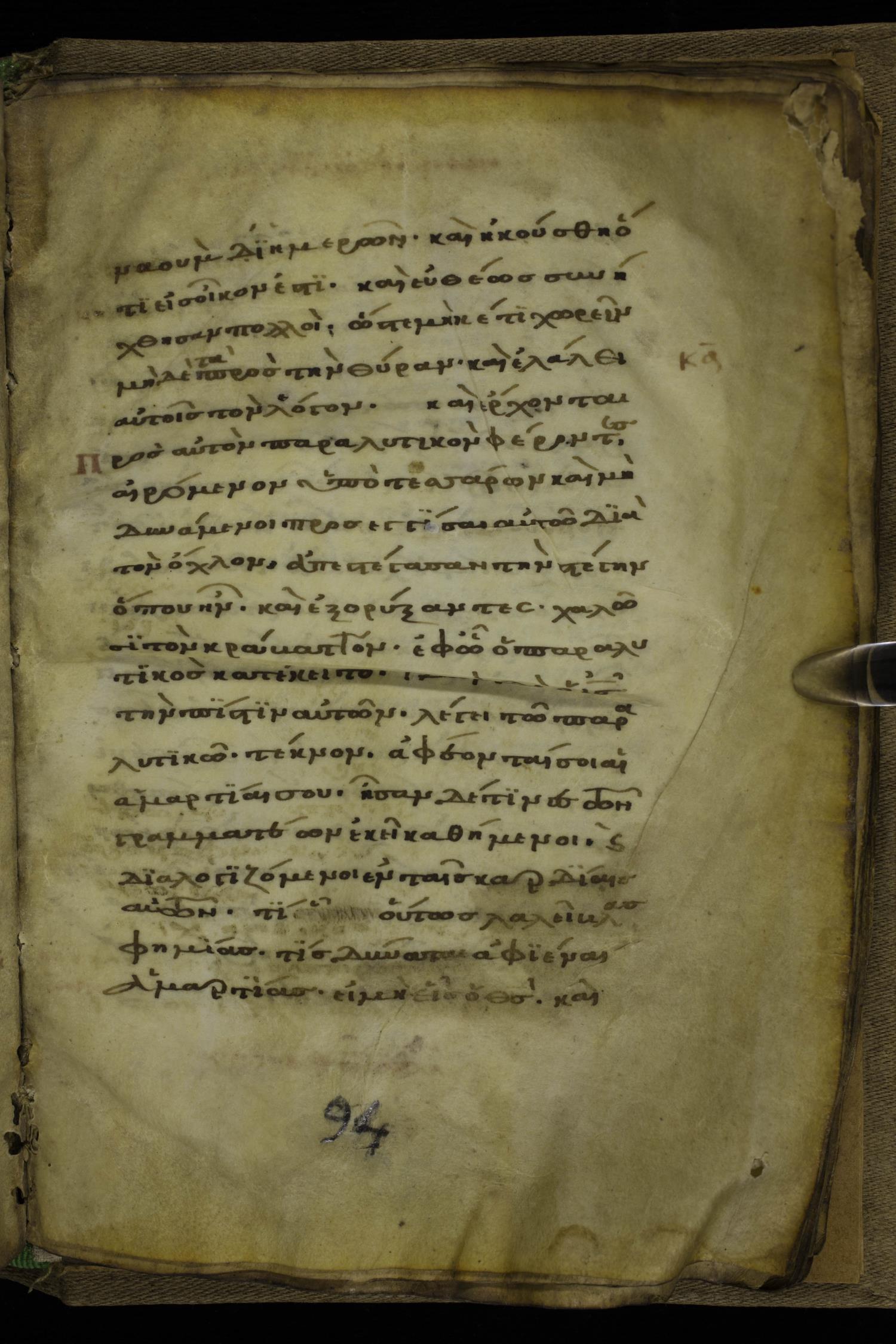 Eleventh century minuscule of the Gospels on parchment; 264 total leaves, 1 column, 20 lines per column. The manuscript is in two locations; both the portion at Muenster (148 leaves) and the portion at the National Library of Greece in Athens (116 leaves) have been digitized by CSNTM.