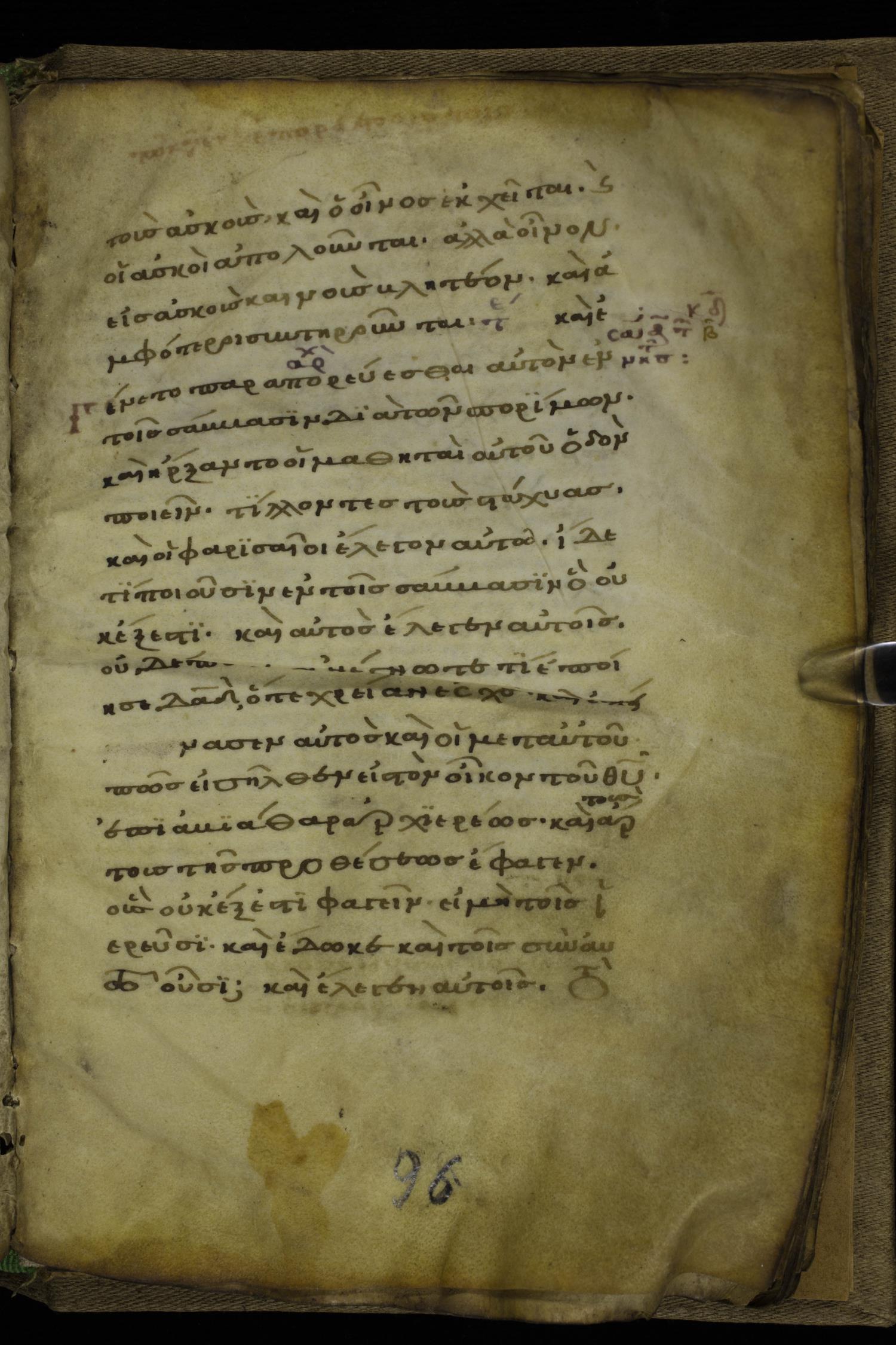 Eleventh century minuscule of the Gospels on parchment; 264 total leaves, 1 column, 20 lines per column. The manuscript is in two locations; both the portion at Muenster (148 leaves) and the portion at the National Library of Greece in Athens (116 leaves) have been digitized by CSNTM.