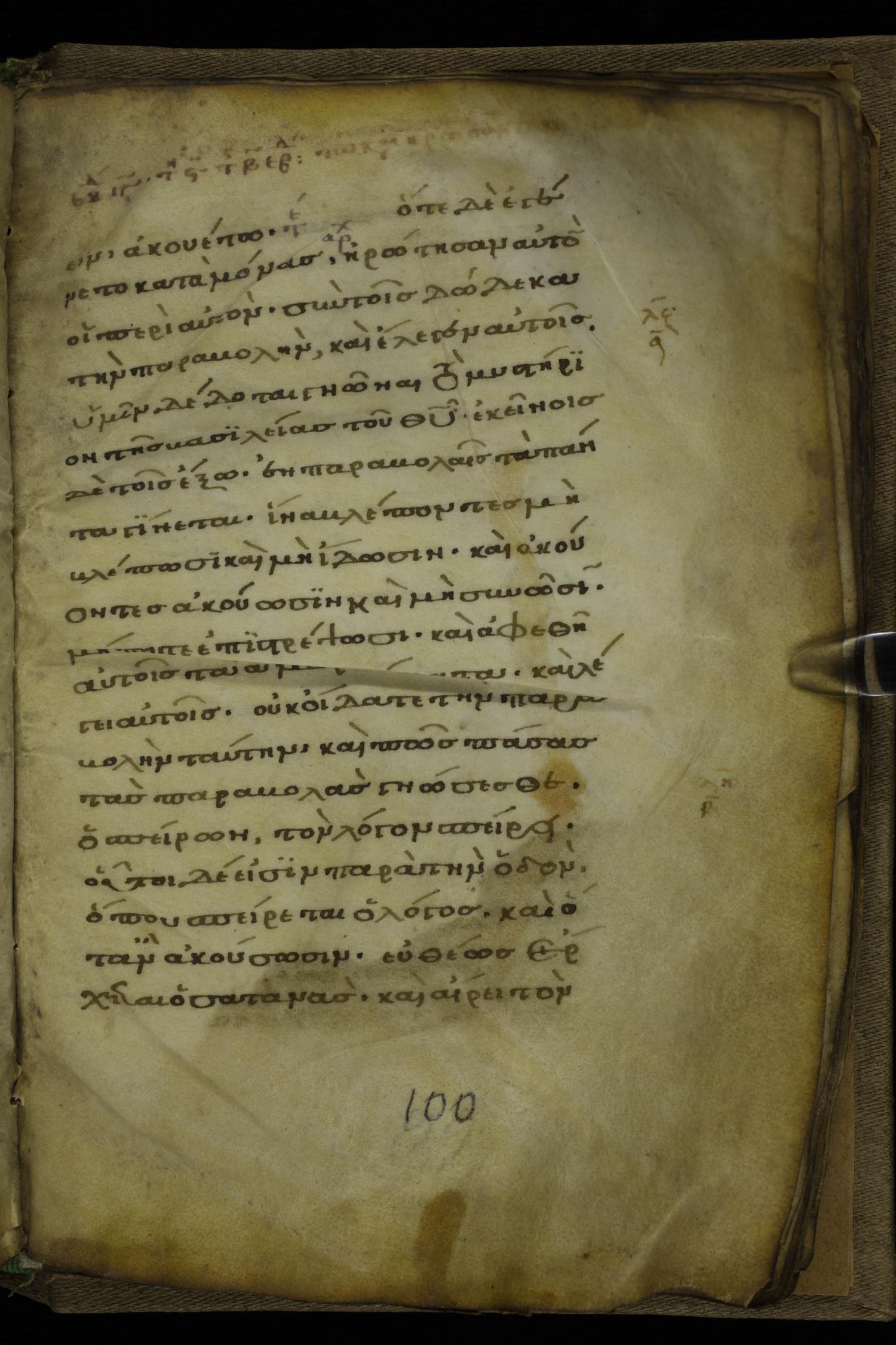 Eleventh century minuscule of the Gospels on parchment; 264 total leaves, 1 column, 20 lines per column. The manuscript is in two locations; both the portion at Muenster (148 leaves) and the portion at the National Library of Greece in Athens (116 leaves) have been digitized by CSNTM.