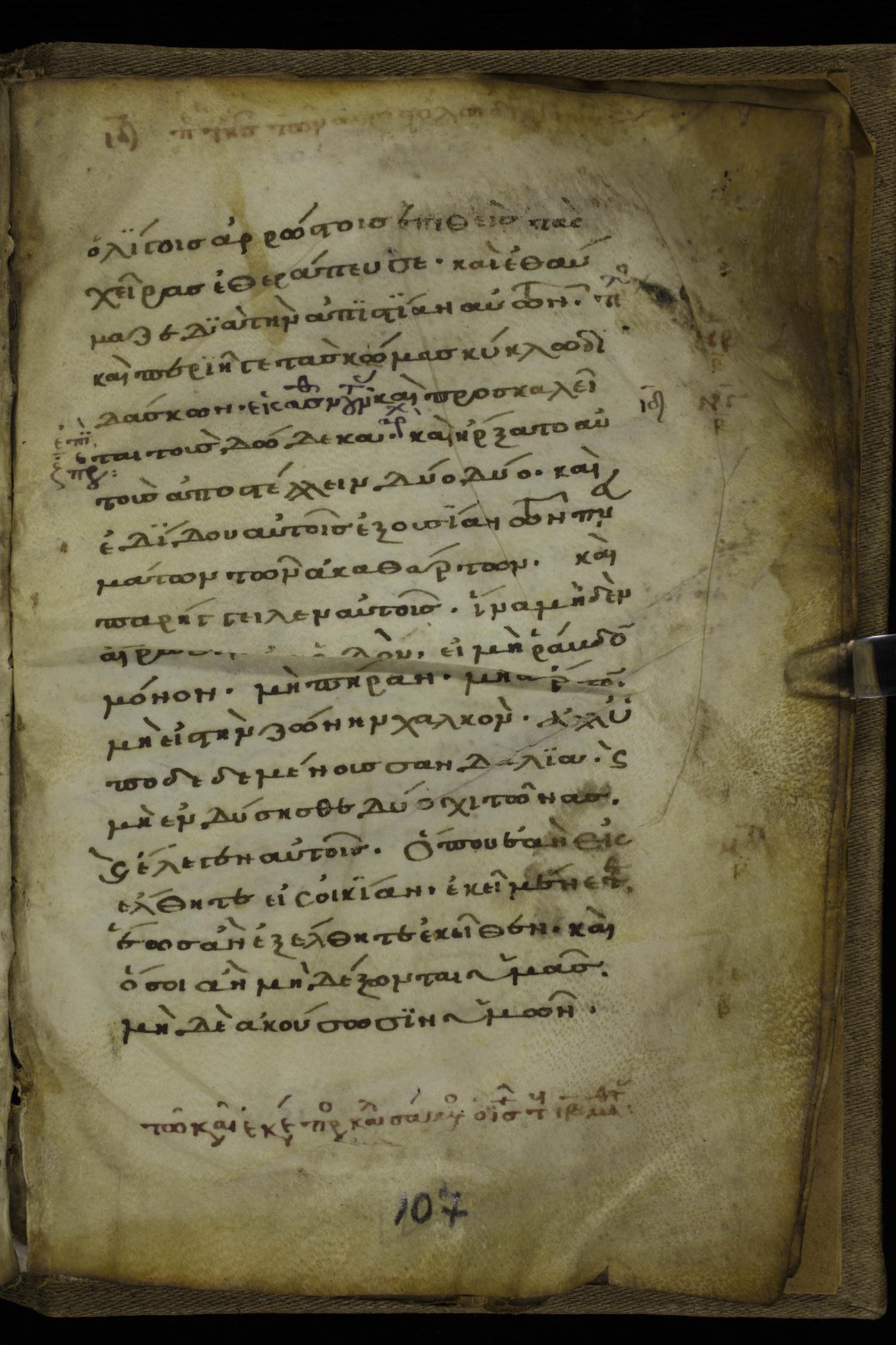 Eleventh century minuscule of the Gospels on parchment; 264 total leaves, 1 column, 20 lines per column. The manuscript is in two locations; both the portion at Muenster (148 leaves) and the portion at the National Library of Greece in Athens (116 leaves) have been digitized by CSNTM.