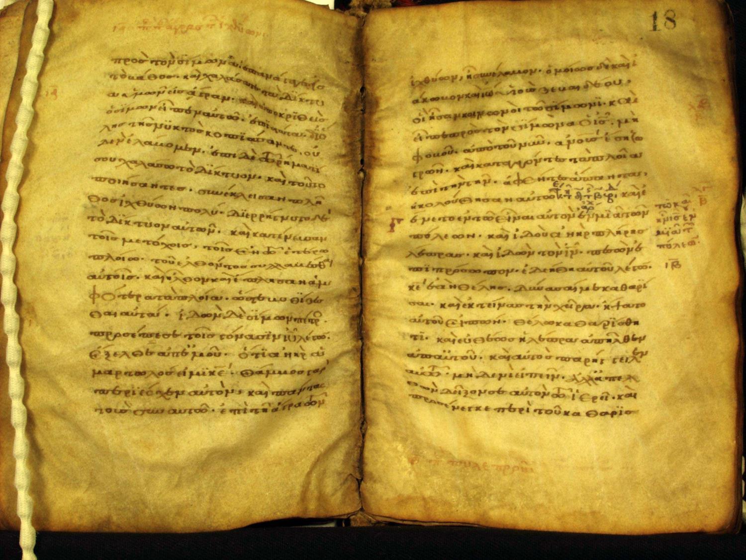 Eleventh century manuscript of the Gospels on parchment; 264 total leaves, 1 column, 20 lines per column. The manuscript is in two locations; both the portion at Muenster (148 leaves) and the portion at the National Library of Greece in Athens (116 leaves) have been digitized by CSNTM.
