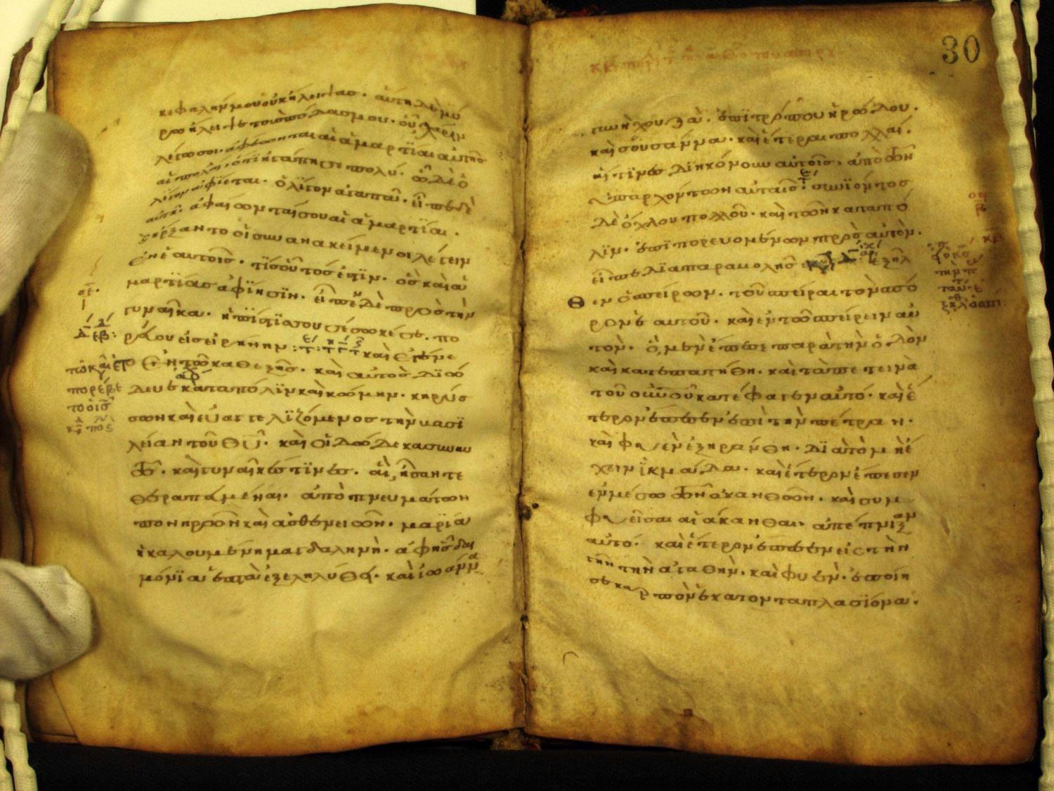 Eleventh century manuscript of the Gospels on parchment; 264 total leaves, 1 column, 20 lines per column. The manuscript is in two locations; both the portion at Muenster (148 leaves) and the portion at the National Library of Greece in Athens (116 leaves) have been digitized by CSNTM.