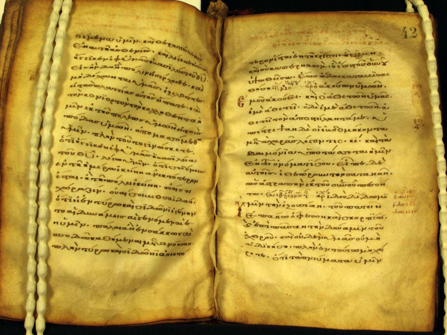 Eleventh century manuscript of the Gospels on parchment; 264 total leaves, 1 column, 20 lines per column. The manuscript is in two locations; both the portion at Muenster (148 leaves) and the portion at the National Library of Greece in Athens (116 leaves) have been digitized by CSNTM.