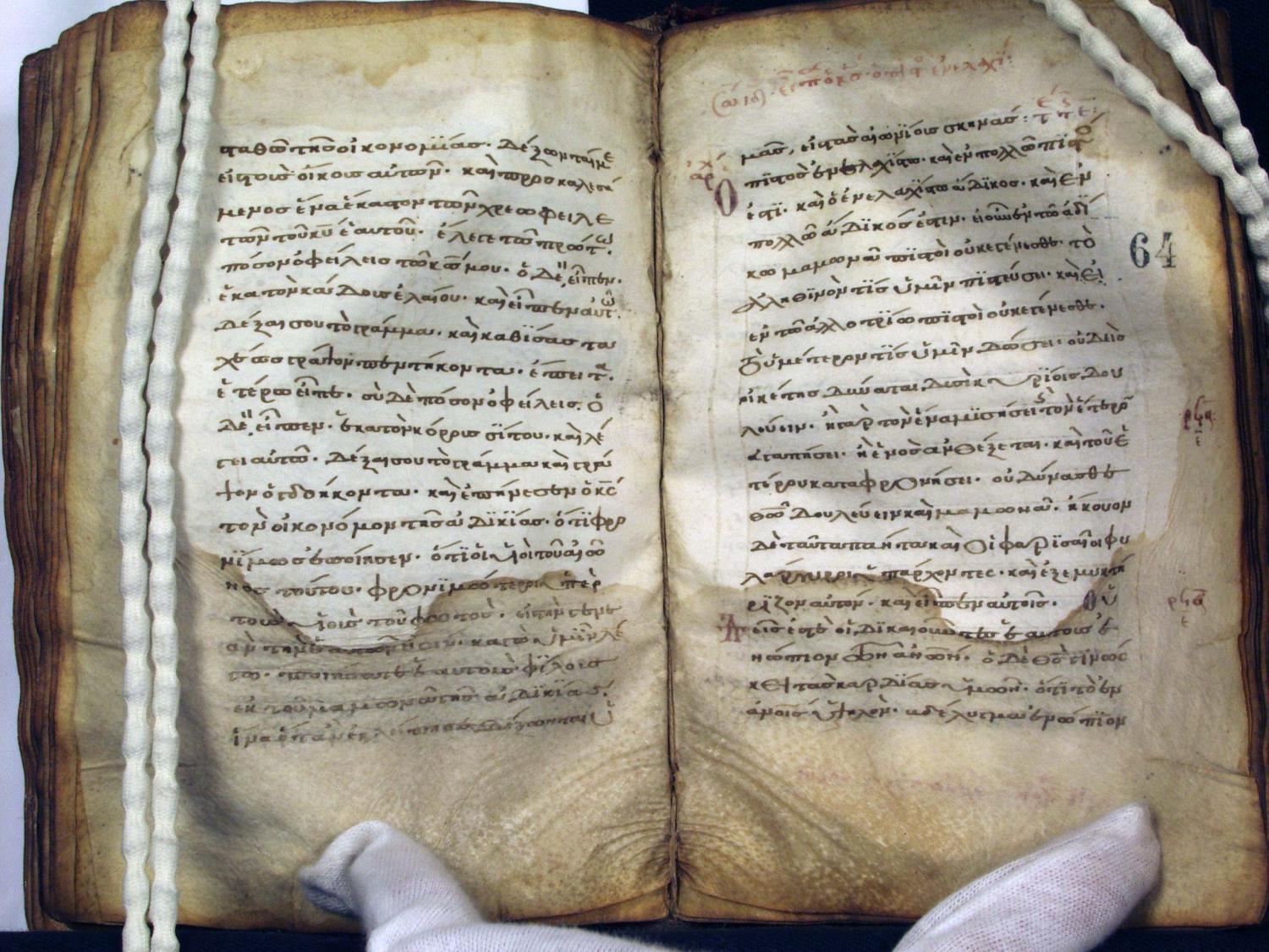 Eleventh century manuscript of the Gospels on parchment; 264 total leaves, 1 column, 20 lines per column. The manuscript is in two locations; both the portion at Muenster (148 leaves) and the portion at the National Library of Greece in Athens (116 leaves) have been digitized by CSNTM.