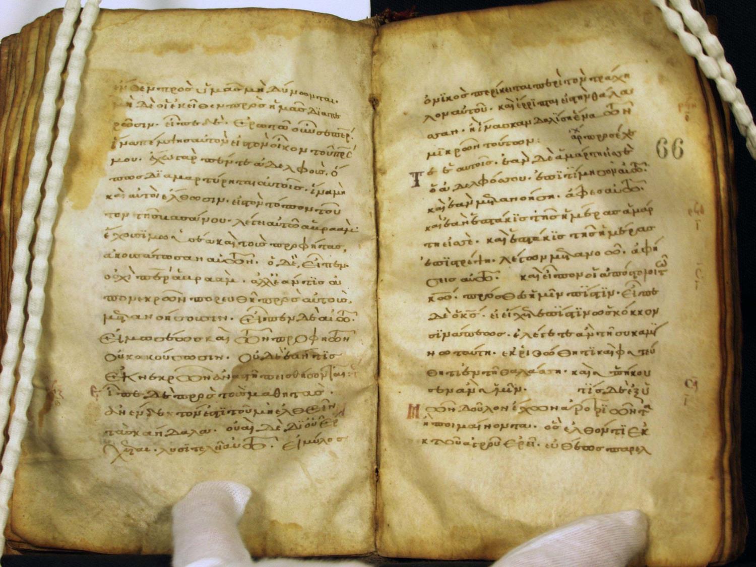 Eleventh century manuscript of the Gospels on parchment; 264 total leaves, 1 column, 20 lines per column. The manuscript is in two locations; both the portion at Muenster (148 leaves) and the portion at the National Library of Greece in Athens (116 leaves) have been digitized by CSNTM.