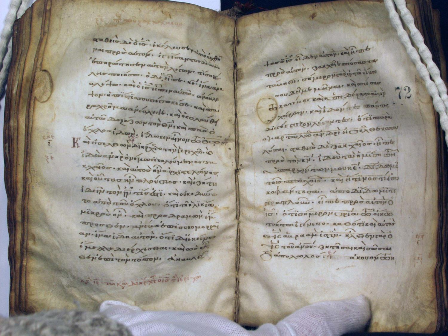 Eleventh century manuscript of the Gospels on parchment; 264 total leaves, 1 column, 20 lines per column. The manuscript is in two locations; both the portion at Muenster (148 leaves) and the portion at the National Library of Greece in Athens (116 leaves) have been digitized by CSNTM.