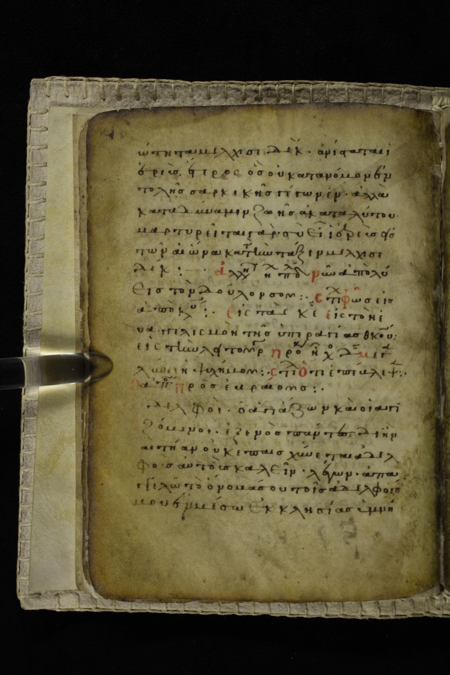 Eleventh century minuscule of the Gospels on parchment; 262 leaves, single column, 22-23 lines per column. Images were taken at the Hellenic Parliament Library in Athens.
