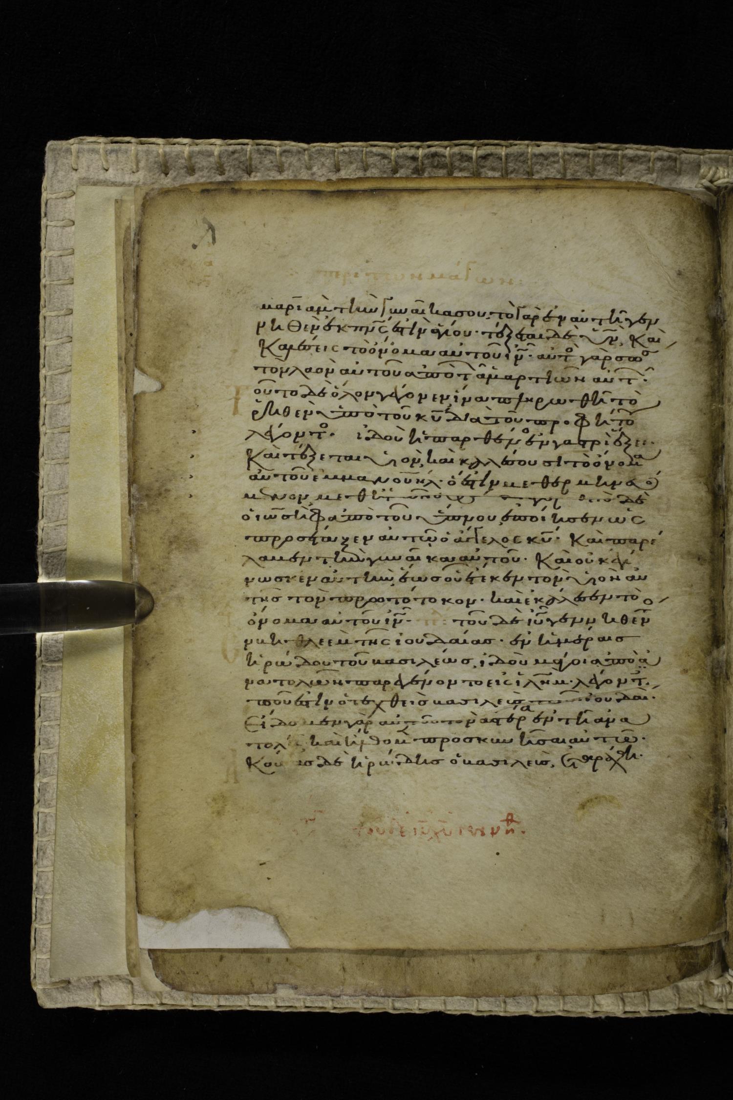 Eleventh century minuscule of the Gospels on parchment; 262 leaves, single column, 22-23 lines per column. Images were taken at the Hellenic Parliament Library in Athens.