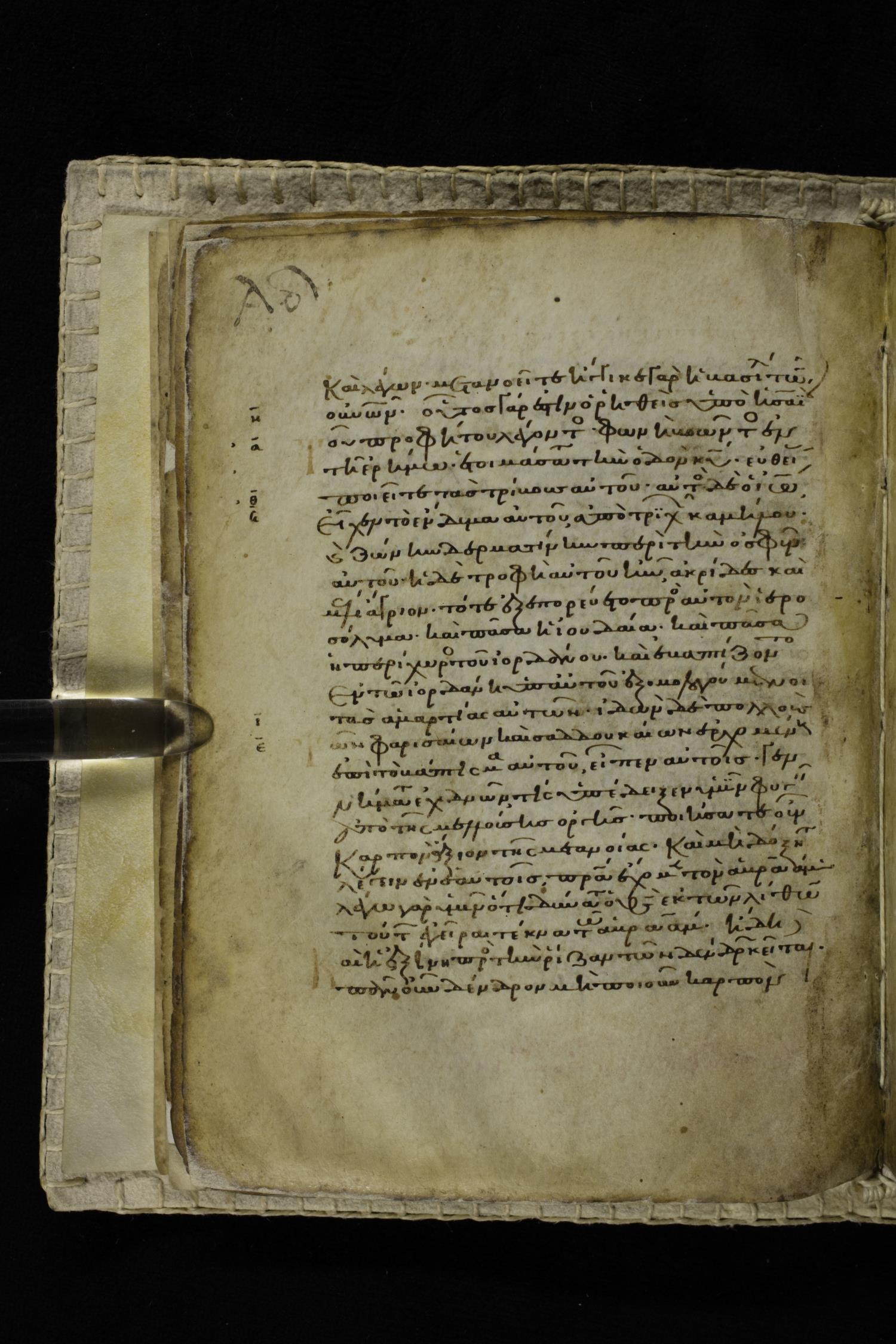 Eleventh century minuscule of the Gospels on parchment; 262 leaves, single column, 22-23 lines per column. Images were taken at the Hellenic Parliament Library in Athens.