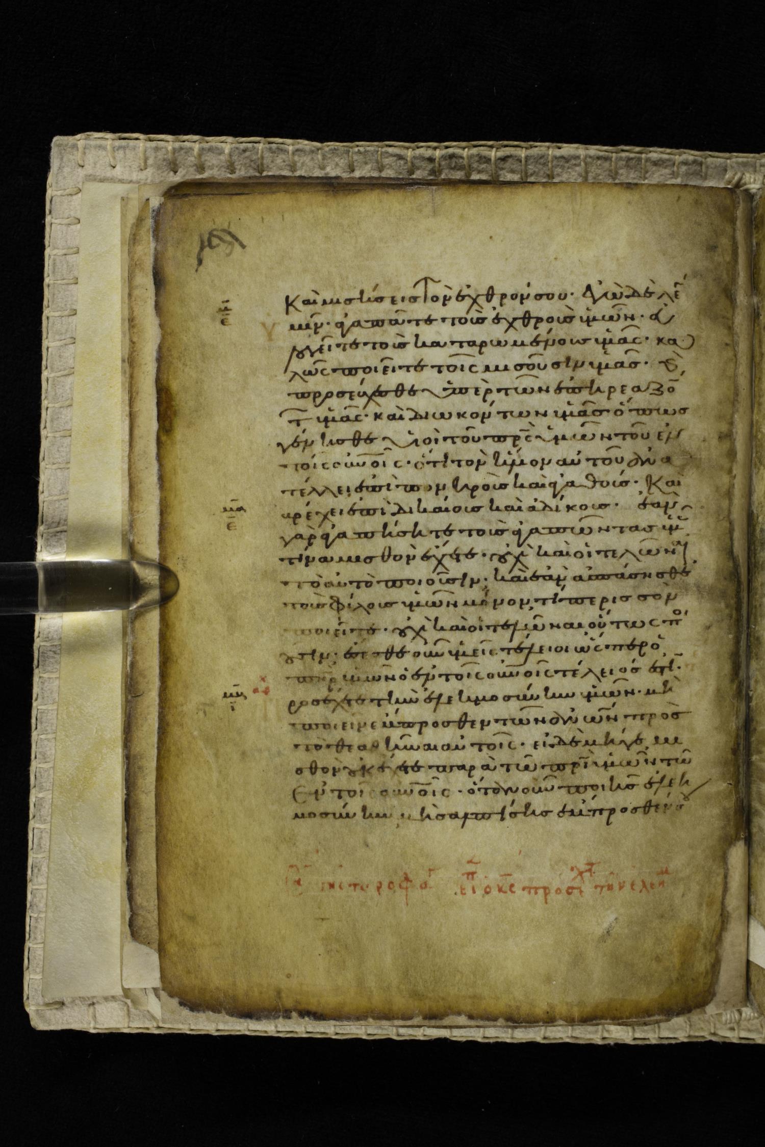 Eleventh century minuscule of the Gospels on parchment; 262 leaves, single column, 22-23 lines per column. Images were taken at the Hellenic Parliament Library in Athens.