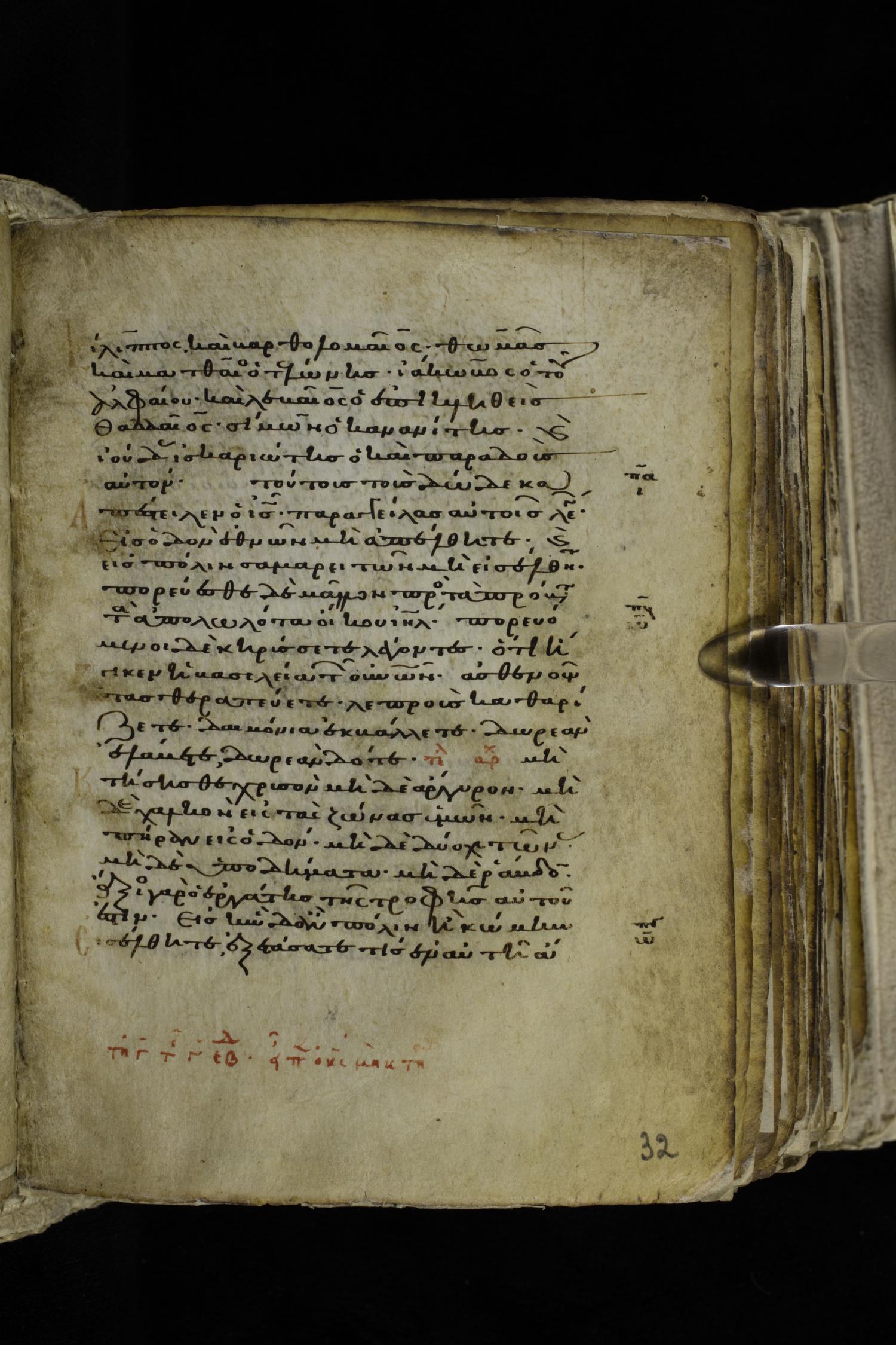 Eleventh century minuscule of the Gospels on parchment; 262 leaves, single column, 22-23 lines per column. Images were taken at the Hellenic Parliament Library in Athens.