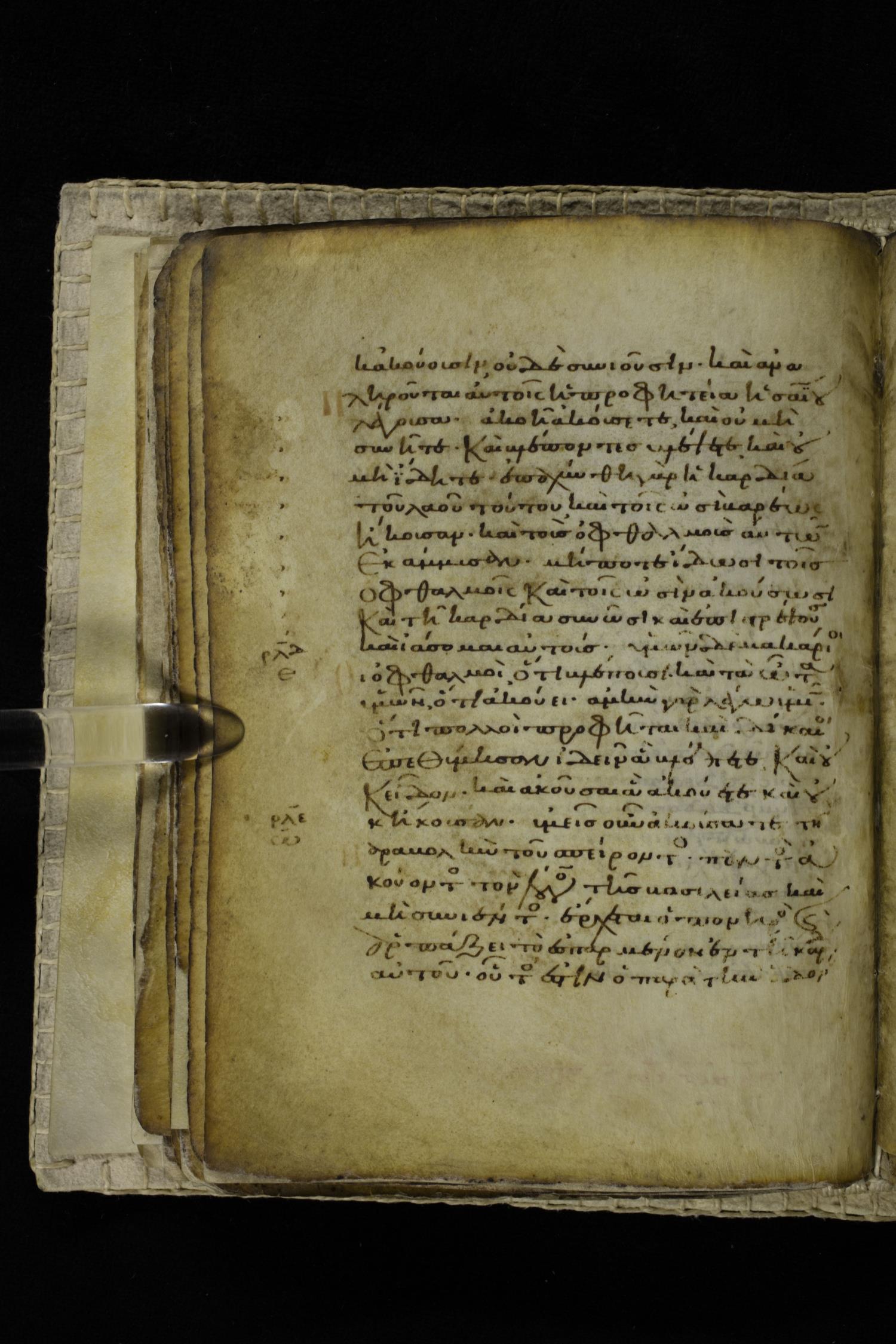 Eleventh century minuscule of the Gospels on parchment; 262 leaves, single column, 22-23 lines per column. Images were taken at the Hellenic Parliament Library in Athens.