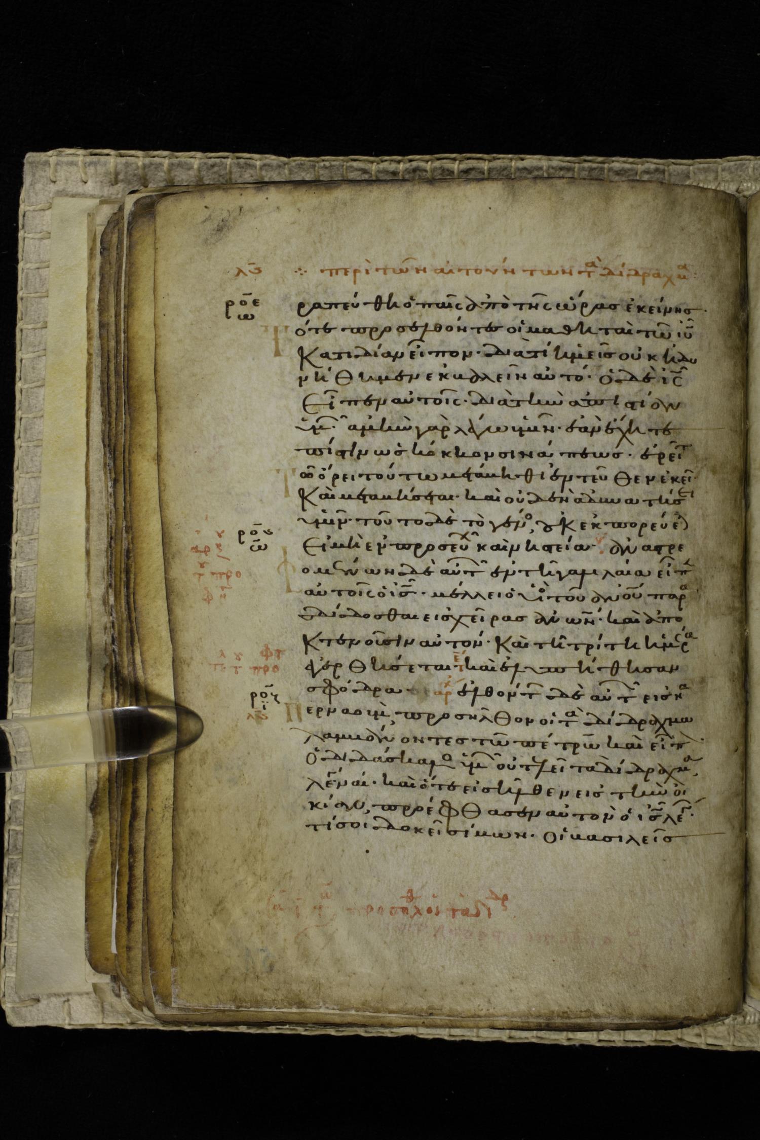 Eleventh century minuscule of the Gospels on parchment; 262 leaves, single column, 22-23 lines per column. Images were taken at the Hellenic Parliament Library in Athens.