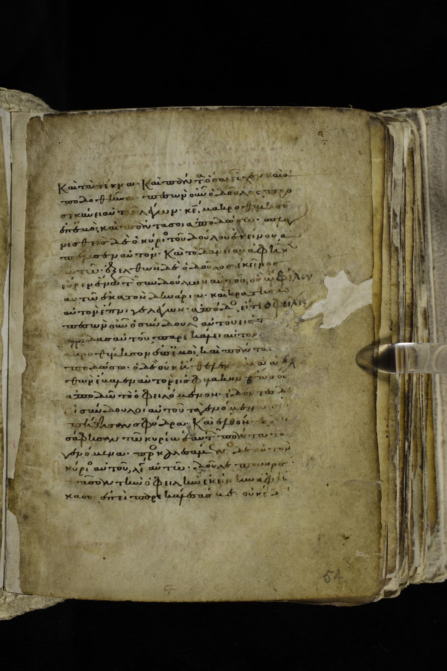 Eleventh century minuscule of the Gospels on parchment; 262 leaves, single column, 22-23 lines per column. Images were taken at the Hellenic Parliament Library in Athens.
