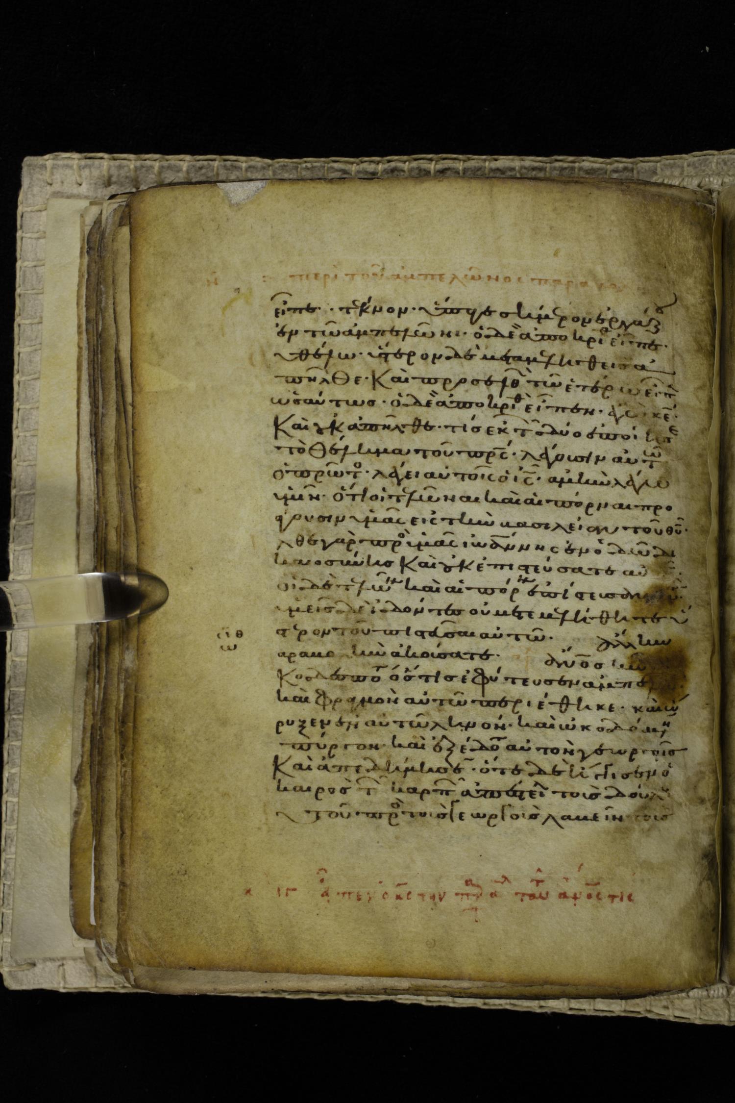Eleventh century minuscule of the Gospels on parchment; 262 leaves, single column, 22-23 lines per column. Images were taken at the Hellenic Parliament Library in Athens.