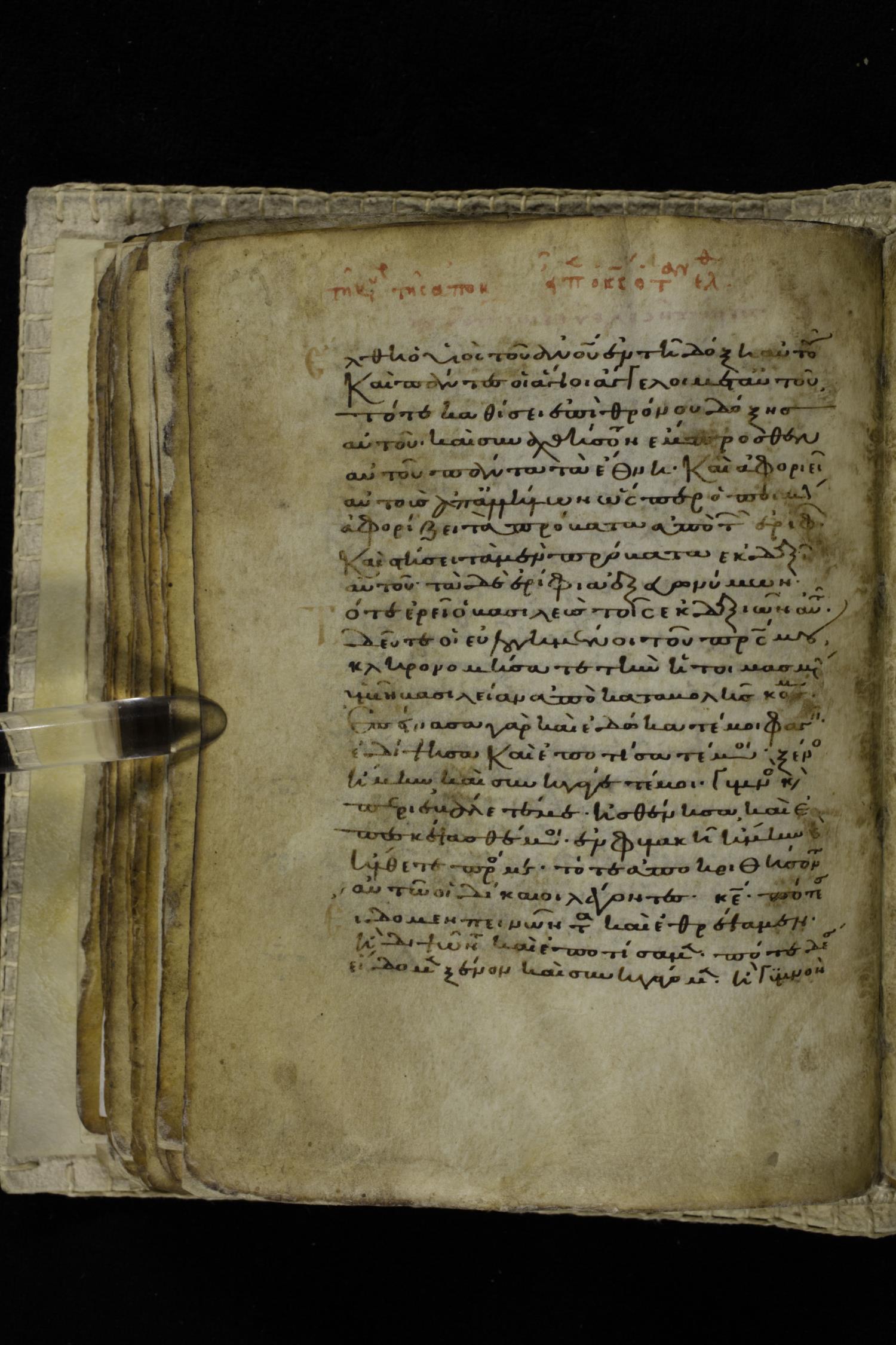Eleventh century minuscule of the Gospels on parchment; 262 leaves, single column, 22-23 lines per column. Images were taken at the Hellenic Parliament Library in Athens.