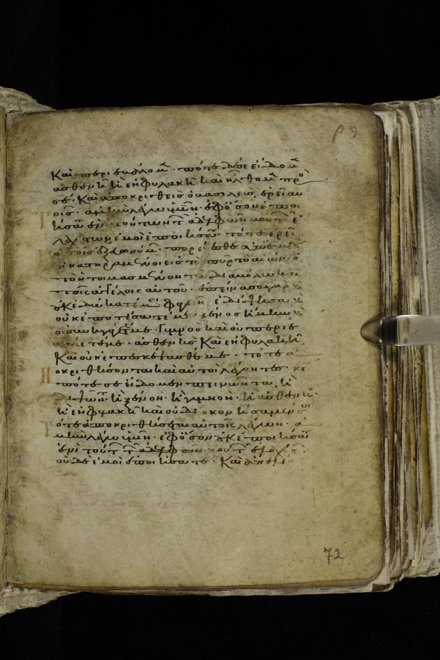 Eleventh century minuscule of the Gospels on parchment; 262 leaves, single column, 22-23 lines per column. Images were taken at the Hellenic Parliament Library in Athens.