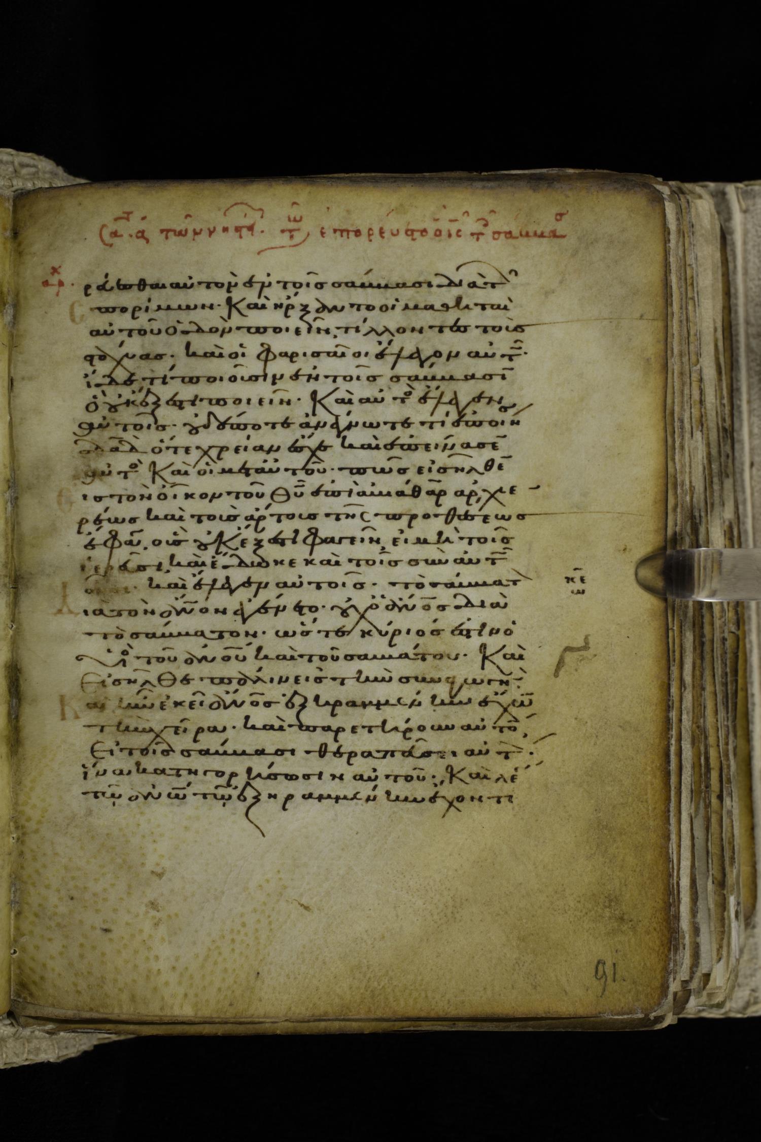Eleventh century minuscule of the Gospels on parchment; 262 leaves, single column, 22-23 lines per column. Images were taken at the Hellenic Parliament Library in Athens.