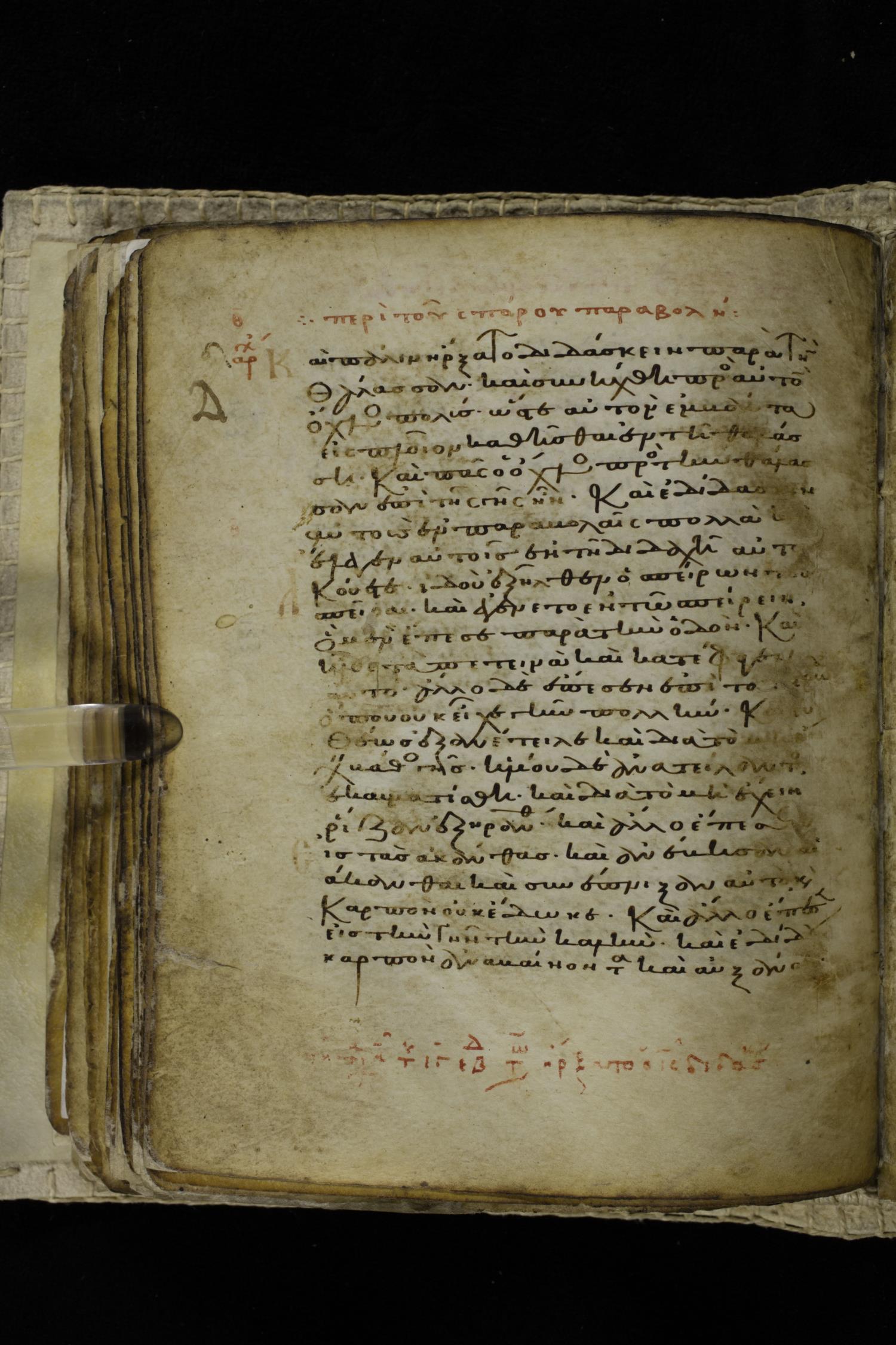 Eleventh century minuscule of the Gospels on parchment; 262 leaves, single column, 22-23 lines per column. Images were taken at the Hellenic Parliament Library in Athens.