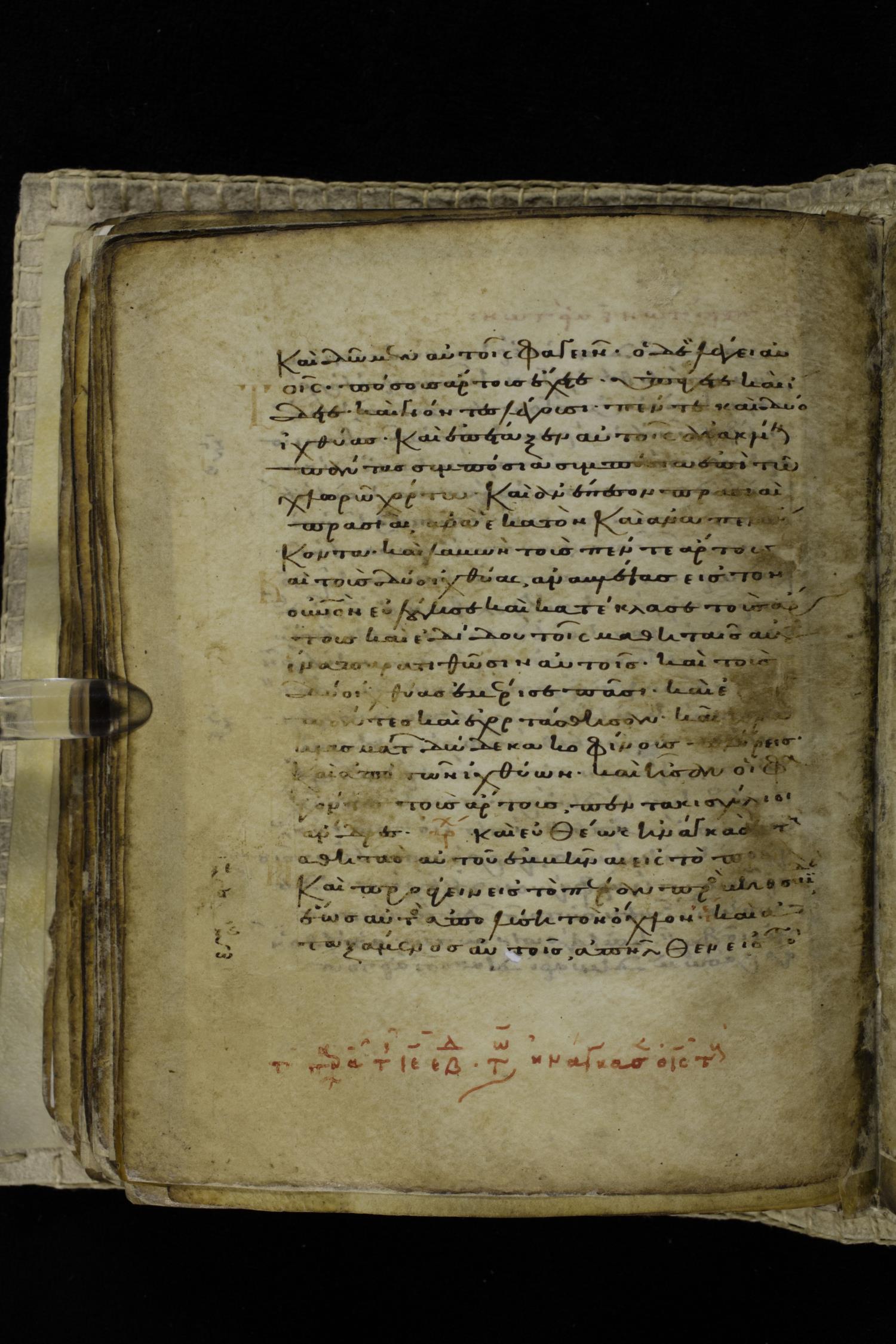 Eleventh century minuscule of the Gospels on parchment; 262 leaves, single column, 22-23 lines per column. Images were taken at the Hellenic Parliament Library in Athens.