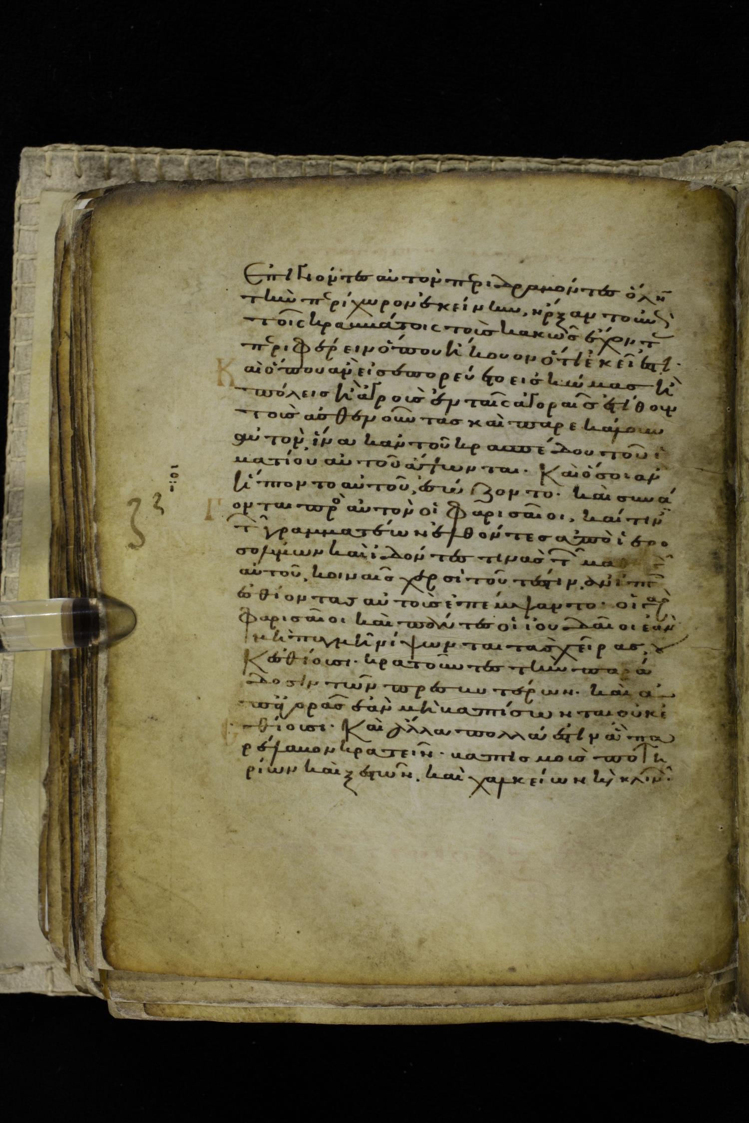 Eleventh century minuscule of the Gospels on parchment; 262 leaves, single column, 22-23 lines per column. Images were taken at the Hellenic Parliament Library in Athens.