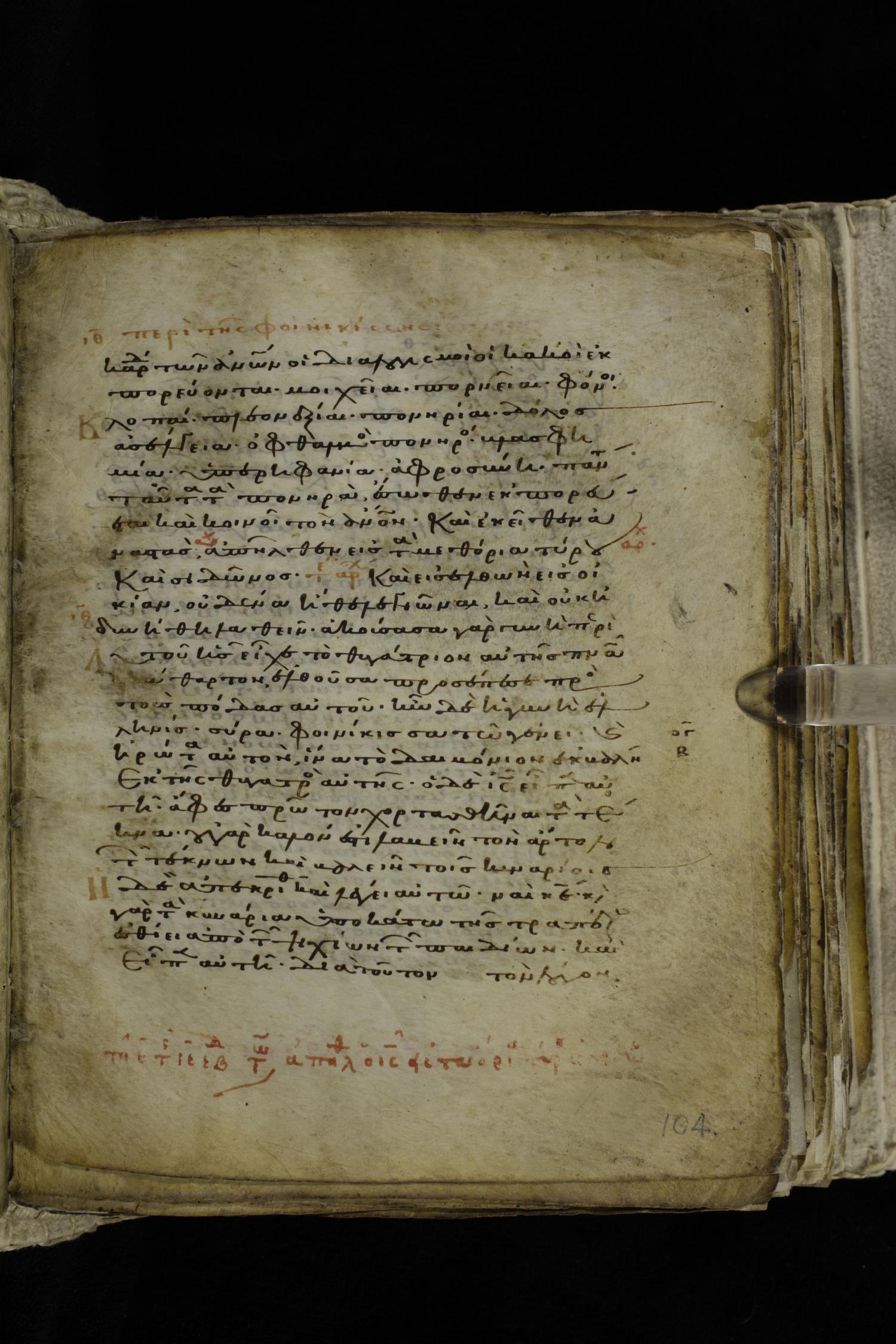 Eleventh century minuscule of the Gospels on parchment; 262 leaves, single column, 22-23 lines per column. Images were taken at the Hellenic Parliament Library in Athens.