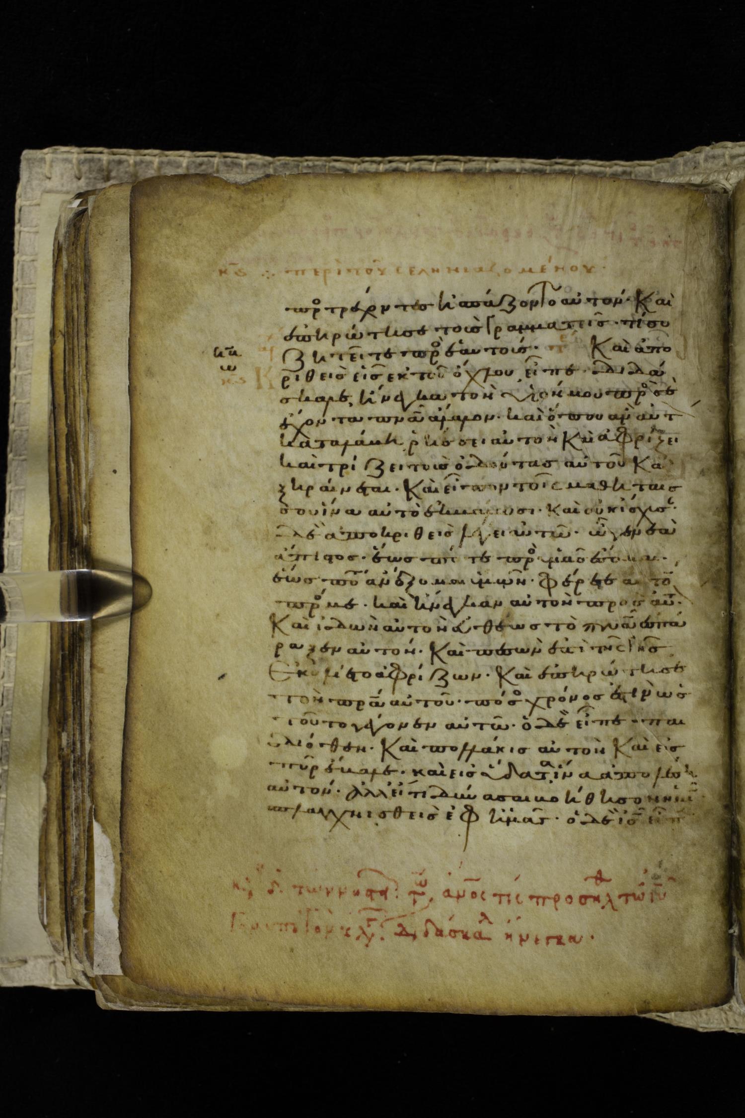 Eleventh century minuscule of the Gospels on parchment; 262 leaves, single column, 22-23 lines per column. Images were taken at the Hellenic Parliament Library in Athens.