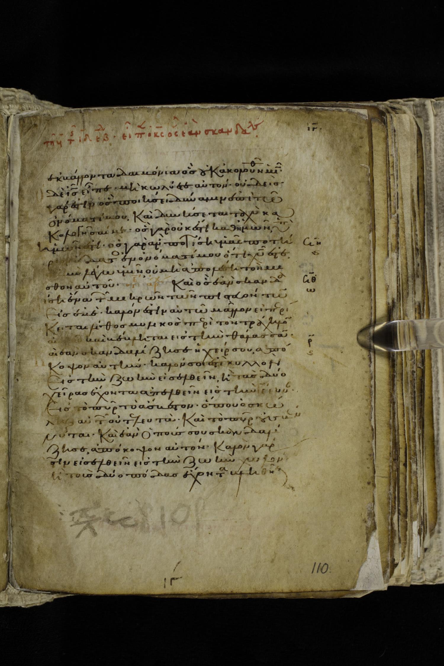 Eleventh century minuscule of the Gospels on parchment; 262 leaves, single column, 22-23 lines per column. Images were taken at the Hellenic Parliament Library in Athens.